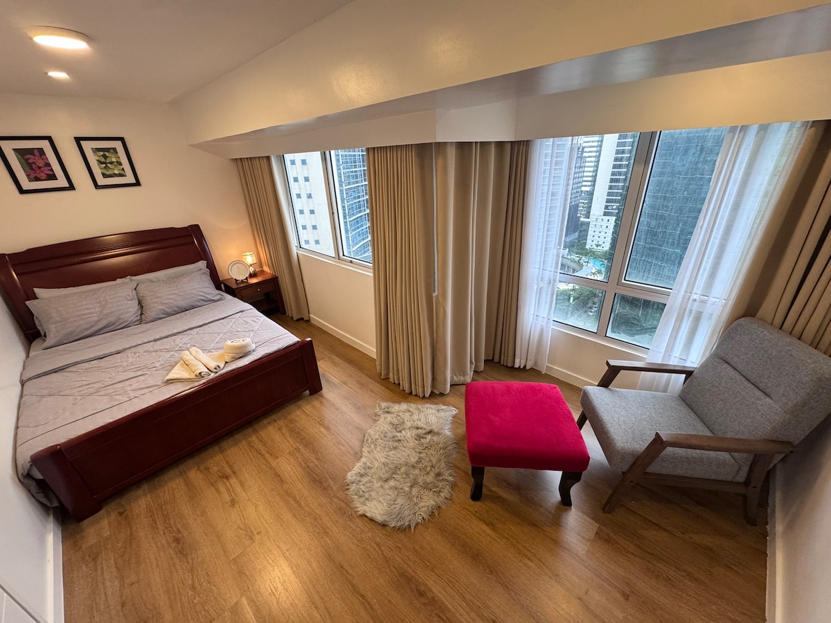 Reserva esta lujosa estancia en el centro de BGC. Todo está a solo unos pasos. Oficinas de primera calidad y centros comerciales de alta gama rodean Uptown Parksuites. Disfruta de una escapada cosmopolita en el centro comercial Uptown. Descubre conceptos únicos de comida y compras. Diviértete toda la noche en bares de primer nivel a la vuelta de la esquina. Relájate en nuestra moderna unidad de dormitorio de mediados de siglo. Las comodidades incluyen un televisor inteligente de 55 pulgadas, internet de 400 MBPS y una zona de estudio. Disfruta de una experiencia de lujo en este céntrico alojamiento.