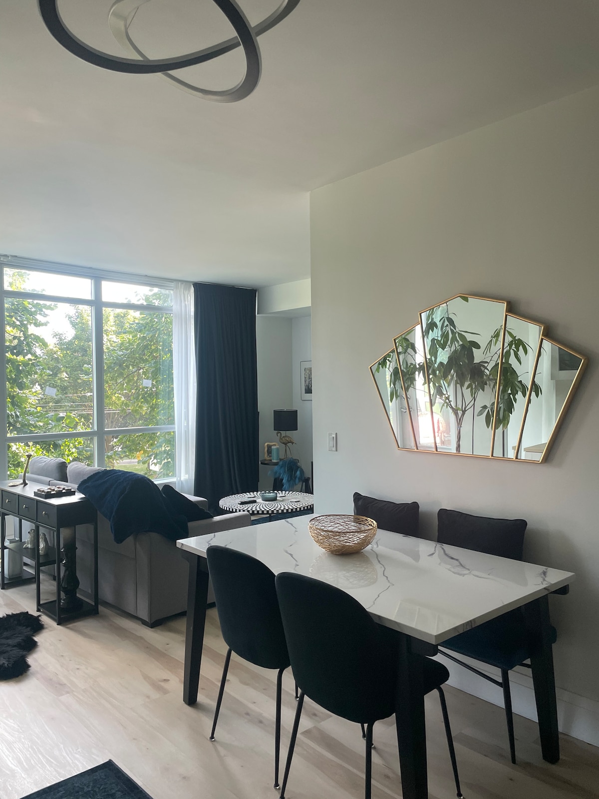 Descubre la comodidad y el estilo en este apartamento de 2 dormitorios y 1 baño recientemente renovado ubicado en el Liberty Village de Toronto. Perfectamente situado con una impresionante vista al lago y un vibrante barrio a la vuelta de la esquina, este apartamento ofrece todo lo necesario para una estancia perfecta en Toronto. Disfruta de una luminosa sala de estar de concepto abierto con un gran balcón completo con barbacoa. Relájate en 1 cama tamaño king y 1 cama tamaño queen, cada una en dormitorios separados con televisores de 55 pulgadas y control de temperatura independiente para una comodidad personalizada.