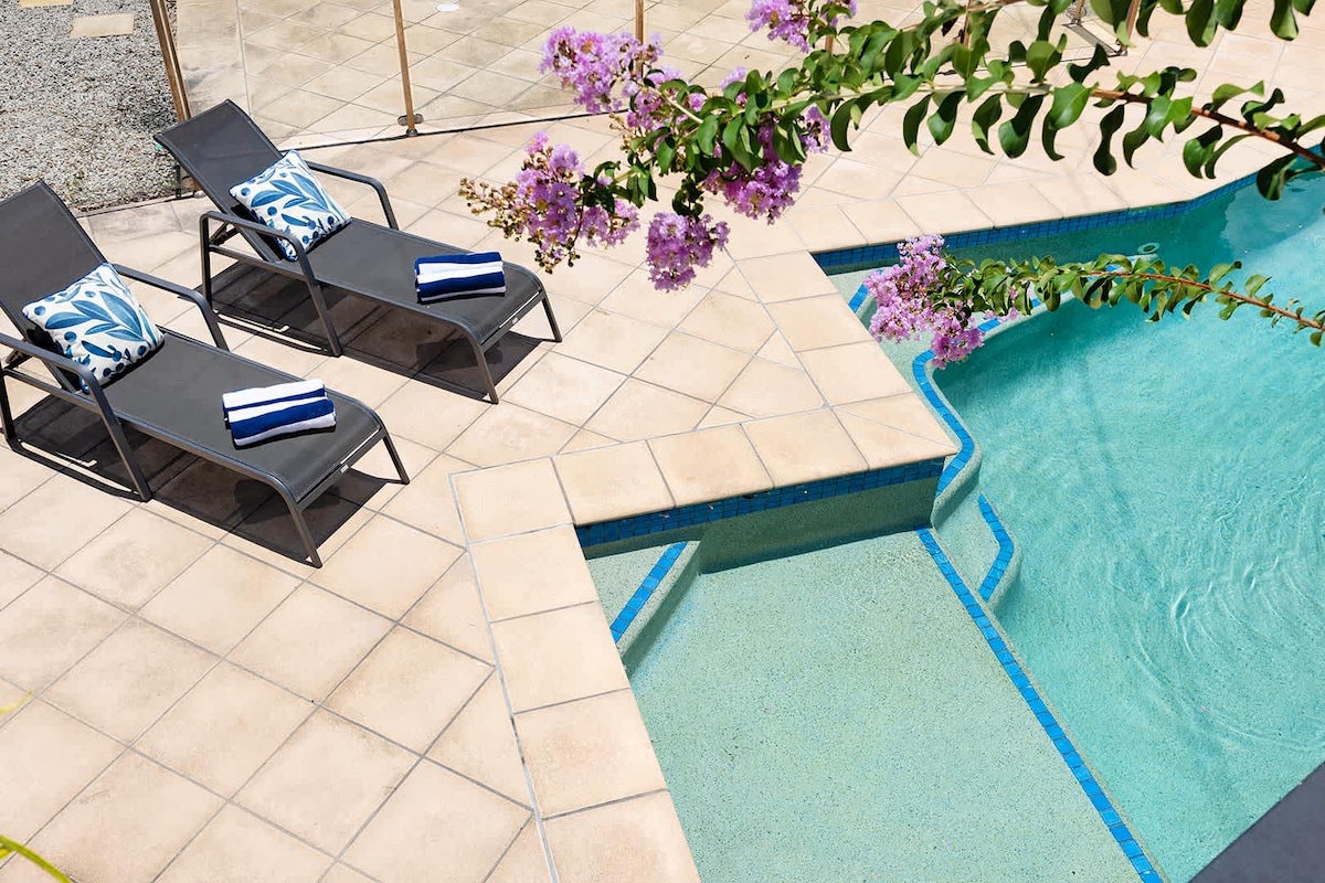 Escápate a tu propio pedazo de paraíso aislado en este barrio residencial frondoso del centro de Hawthorne. Relájate en una cómoda cabaña o en la piscina, todo exclusivamente para ti. Se aceptan mascotas. Una bebida de bienvenida y una mini bandeja de queso esperan tu llegada. Los suministros para el desayuno, el café, la fruta y los artículos de la despensa también son gratuitos. A 8 minutos a pie encontrarás cafeterías, restaurantes, cines, tiendas de bebidas y de comestibles/delicatessen. Fácil acceso al aeropuerto, a 20 minutos. Ideal para ocasiones especiales, una escapada corta o una estancia más larga.