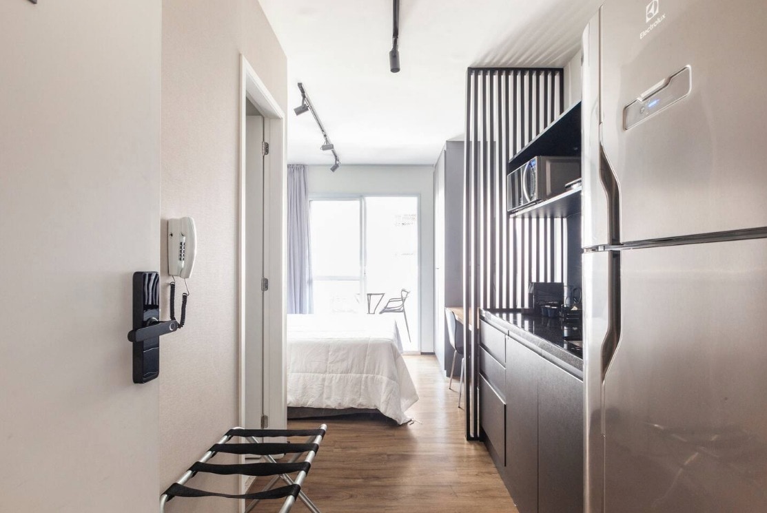 Come live the experience of staying at Senses Z Pinheiros, designed to provide maximum comfort and pleasure during your stay. It´s located on R. Pinheiros, currently one of the most popular streets in SP with restaurants, cafes and shops. Enjoy the district with the bike provided for free by Senses. The building is very safe, it has a gym and a 24h micro market available. The studio has a 50”tv (Netflix), AC, queen size bed, full kitchen... and there is also a small charming green balcony.