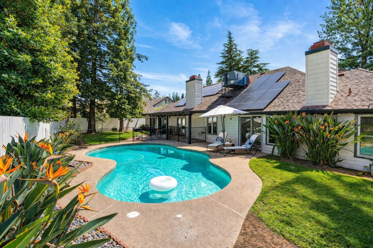 Ubicada en la muy codiciada zona de Woodward Park en Fresno, esta espaciosa vivienda apta para familias ofrece todo lo que necesitas para una estancia inolvidable. Disfruta de una piscina privada, un patio al aire libre y un amplio estacionamiento, que incluye espacio para casas rodantes y embarcaciones. El alojamiento cuenta con 1 cama king, 2 camas queen y un sofá cama para ofrecer la máxima comodidad. A pocos minutos de Yosemite, de los mejores campos de golf, tiendas y restaurantes, ¡perfecto para familias o parejas que buscan relajarse y disfrutar de Fresno en su máxima expresión!