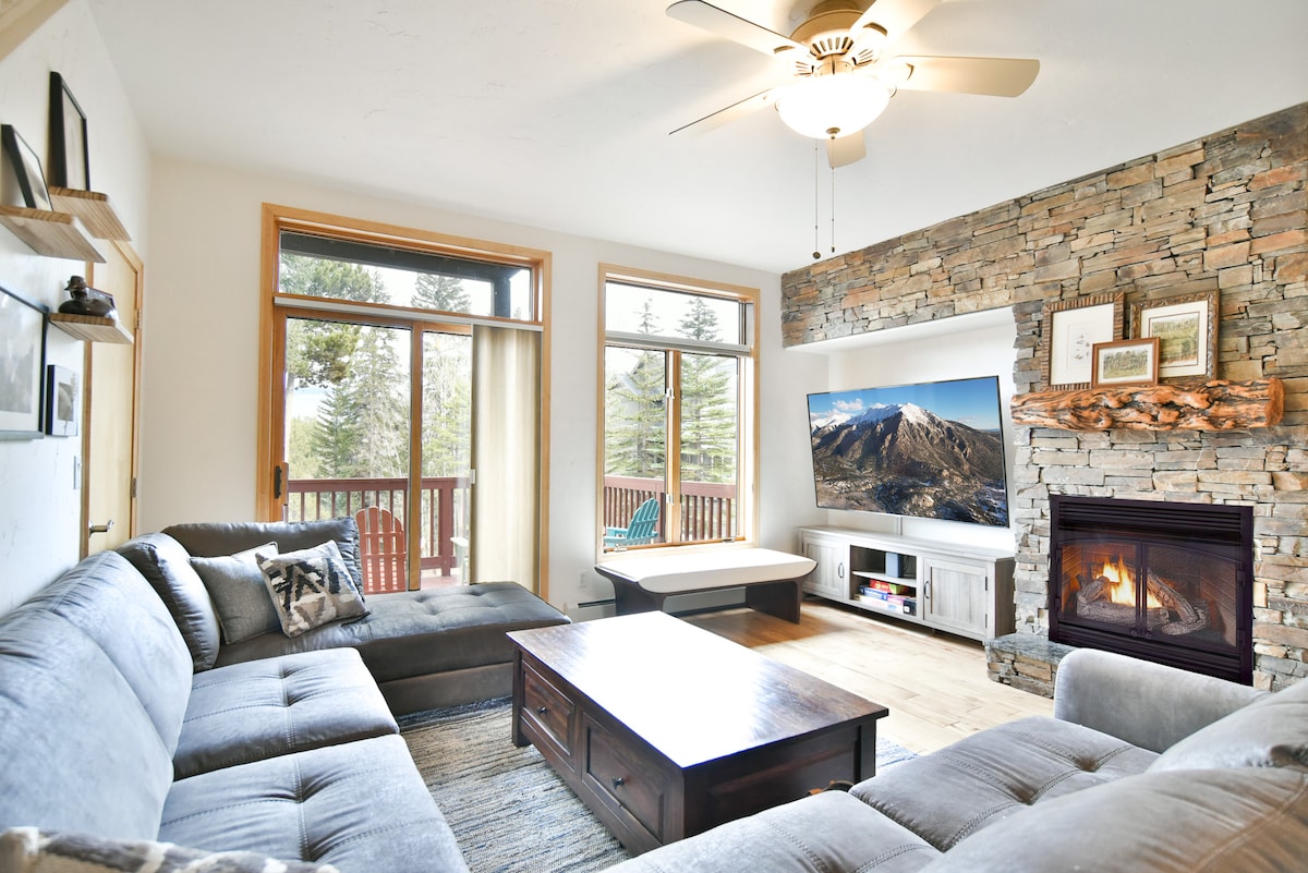 This spacious, tastefully decorated town home is perfect for families and groups wanting to be close to the lifts, shopping, and night life of Breck. You'll love the gorgeous vaulted ceilings, open floor plan, and floor-to-ceiling windows offering beautiful natural light. 5 minute walk through peaceful neighborhood to Quicksilver lift, 1.5 blocks from town. With hot tubs and swimming pool, this is the perfect year round mountain getaway. With Alexa!