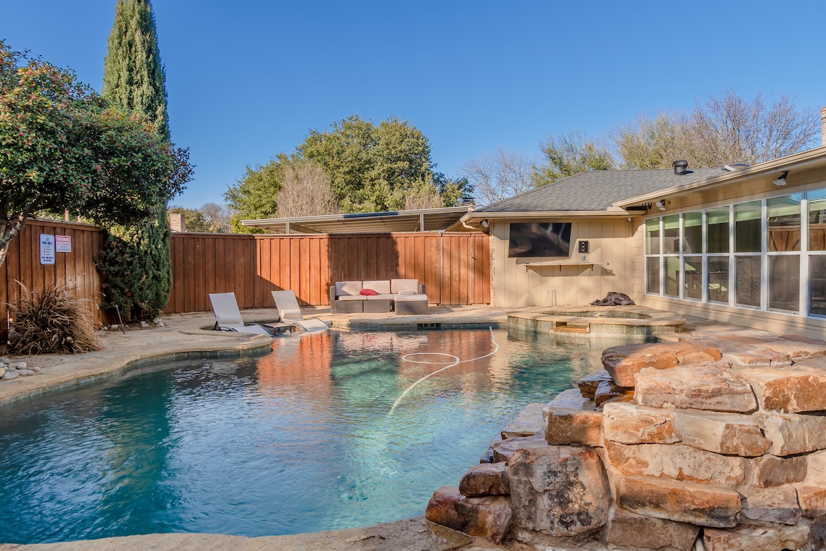 @CowboyCabana.DFW *¿Tienes un grupo extra grande? También tenemos un alojamiento al lado lleno de servicios increíbles. Contacta conmigo directamente para saber cómo reservar AMBOS alojamientos. *Aparece en el programa de televisión Destination Channel, Staycation: ¡Dallas! Edición deportiva. Mira el episodio en YouTube. * ¡Ofrezco llegada o salida flexible, cafetería de cortesía, paquetes de decoración y alquiler de flotadores para la piscina! A 10 minutos de AT&T y Globe Life