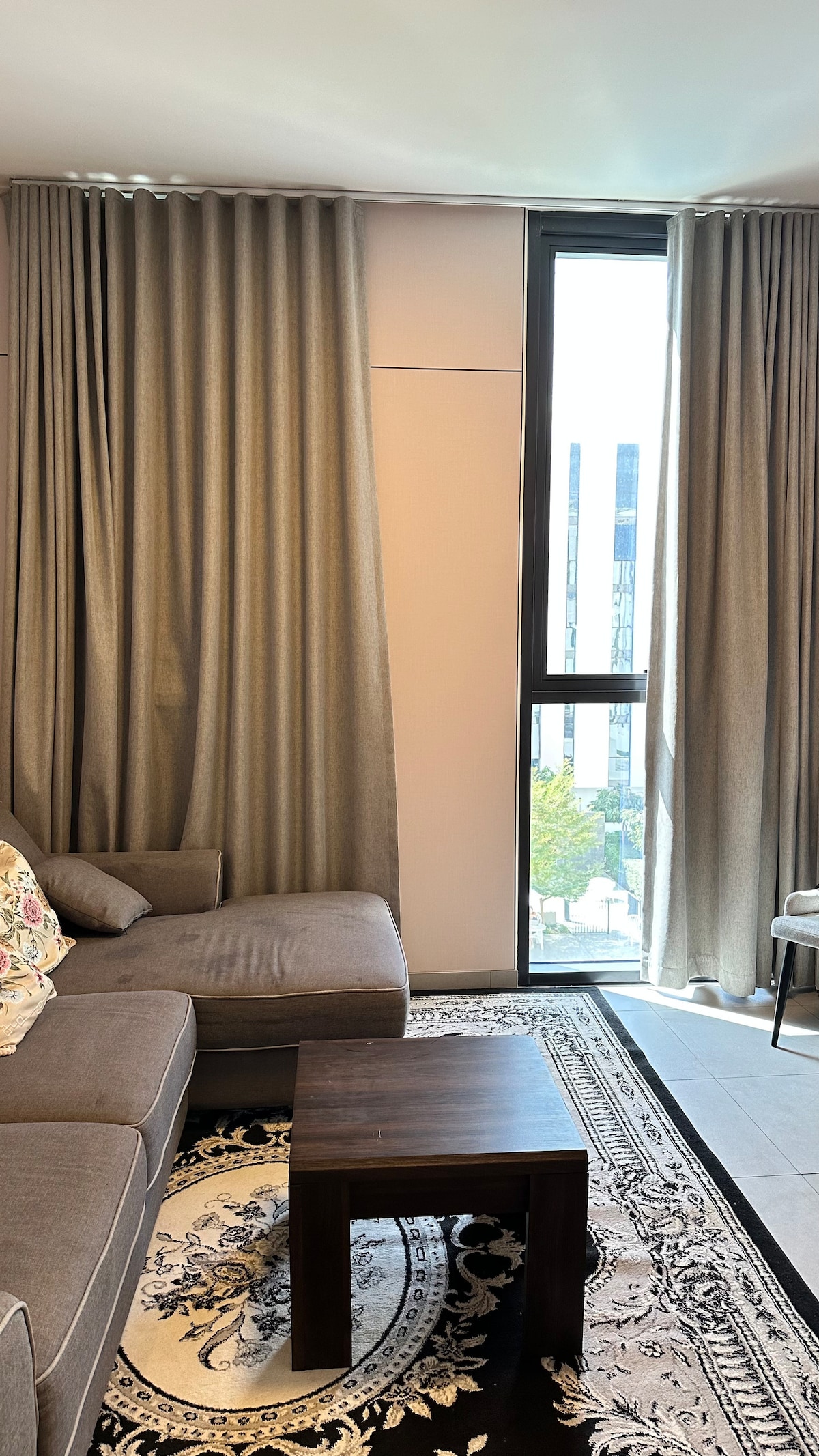 Mi apartamento tiene 1 habitación con una cama tamaño king para 2 personas, una habitación con dos camas individuales para 2 personas y 1 habitación pequeña con una cama pequeña para 1 persona. Todas las habitaciones incluyen un baño y hay un baño disponible en la sala de estar, que incluye cómodos sofás. Además, hay una despensa disponible con todos los equipos de cocina y servicio necesarios. Mi apartamento forma parte del hotel Adress Fujairah, Alaqah.  Mi apartamento está en la planta baja, donde podrás disfrutar del balcón.