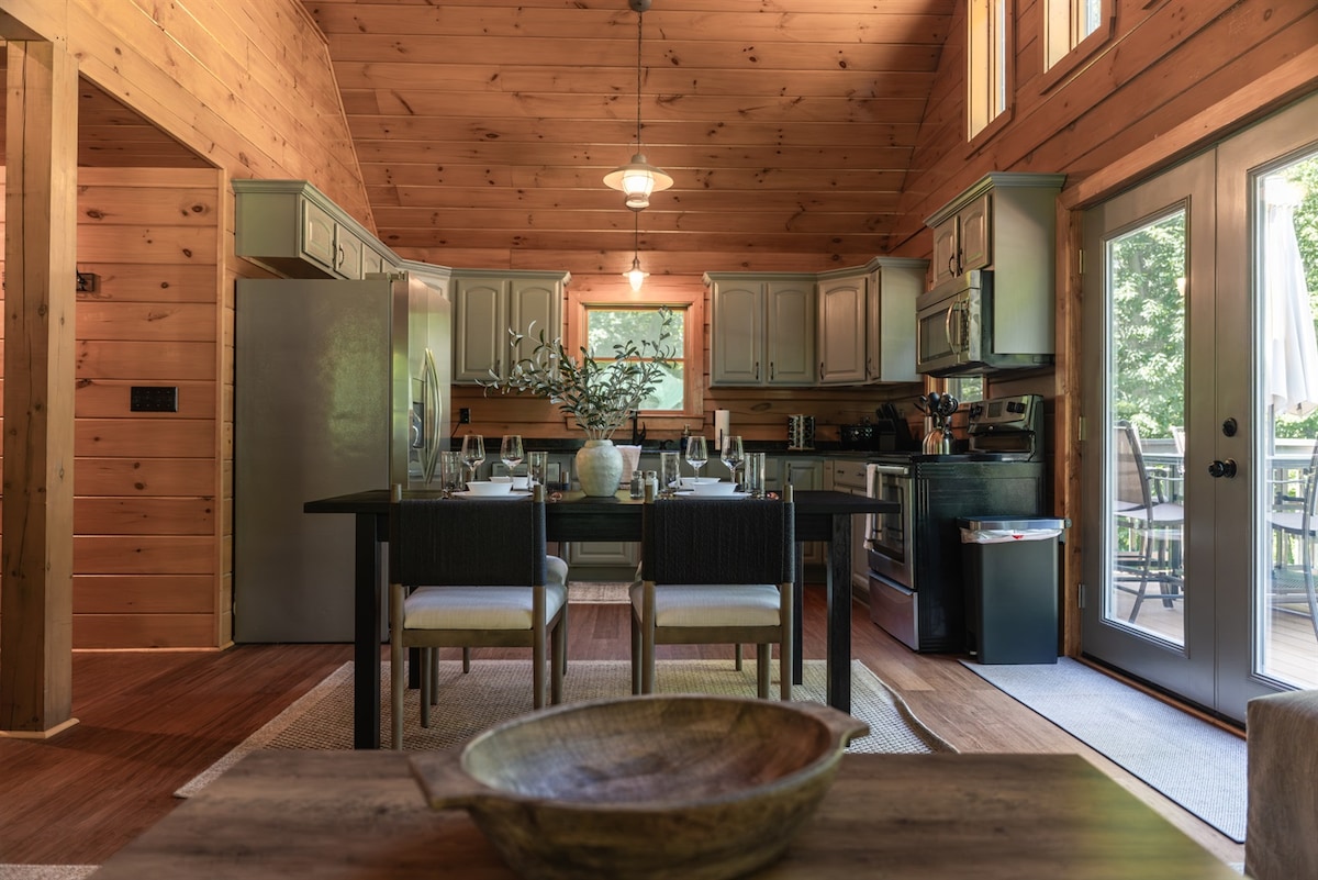 Bienvenido a la cabaña Hideaway, donde podrás relajarte en el abrazo de la naturaleza. Aquí, puedes asar tus platos favoritos en la parrilla, descansar en las sillas Adirondack en el balcón o simplemente relajarte en el interior. Por la noche, reúnete junto al fuego en el porche para ver bailar a las luciérnagas o relájate en el jacuzzi en el porche trasero. Es la mezcla ideal de serenidad natural y comodidad hogareña. En invierno, acércate a la estufa de leña en la sala de estar y ponte al día con tus programas de televisión favoritos.