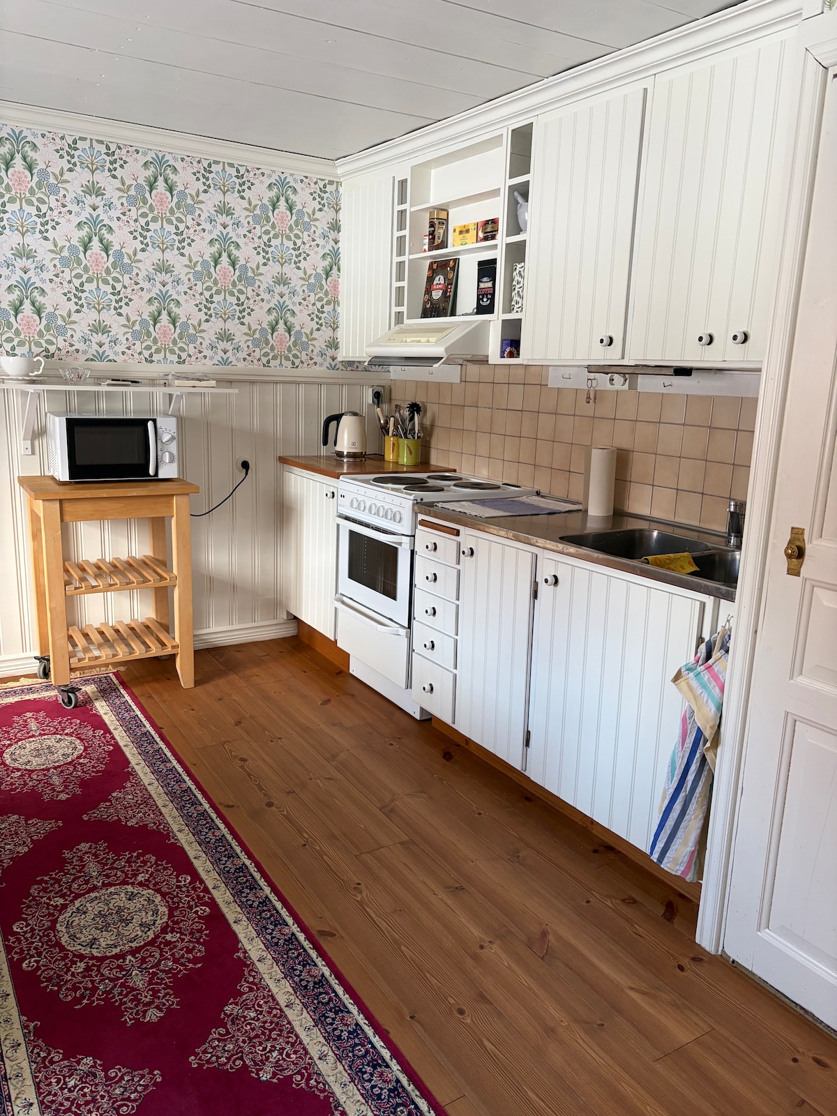 El alojamiento es una zona de invitados independiente en la casa con entrada propia. Consta de un dormitorio con una cama doble y un amplio salón con una litera, cocina y zona de estar. El baño tiene inodoro, ducha y lavadora. Un gran balcón da al lago, con asientos bajo una pérgola, y los huéspedes tienen acceso privado a todo el balcón. Es posible tomar prestado un bote de remos y chalecos salvavidas. Las toallas y sábanas no están incluidas, pero se pueden alquilar por 150 coronas suecas por juego. La limpieza no está incluida en el alojamiento.