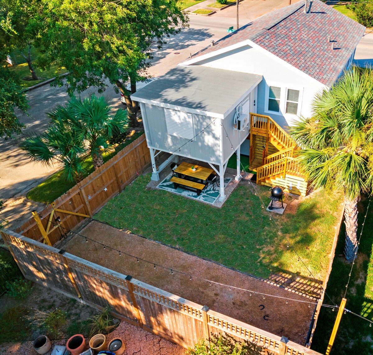 Check yourself into this lovely guest suite featuring a private entrance and off street parking. Centrally located just 3 miles from the cruise ship terminals, 4 miles from Moody Gardens, and a 10 minute walk to the beach! The suite is an addition to a well maintained craftsman bungalow in a residential neighborhood. It features quality solid wood furnishings, stylish decor, and several amenities including coffee maker w/coffee supplies, microwave, hair dryer, smart TV, dishes, and seating.