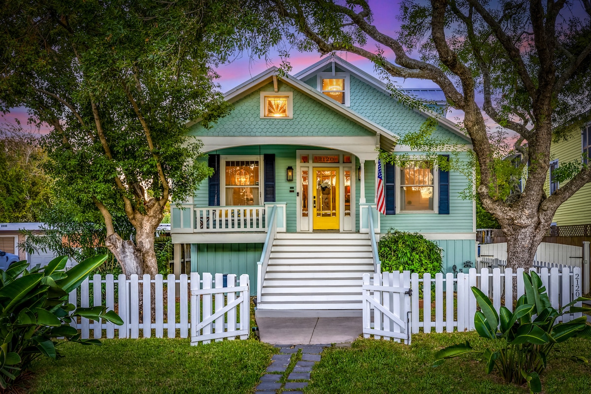 ¡Ubicación privilegiada! Retiro de playa bellamente renovado y cuidadosamente diseñado, que combina el lujo moderno con comodidades adicionales. Camina hasta el famoso Strand para cenar, ir de compras, disfrutar del arte y la vida nocturna. A pocos pasos de las playas Stewart y Porretto, cruceros y UTMB. A minutos en coche de Pleasure Pier, Moody Gardens, Schlitterbahn y el malecón. El encanto histórico se combina con comodidad con 2 dormitorios, 2 baños y un sofá cama tamaño queen. ¡Cama tamaño king en la suite principal! ¡Ideal para familias, parejas o aventureros solitarios!