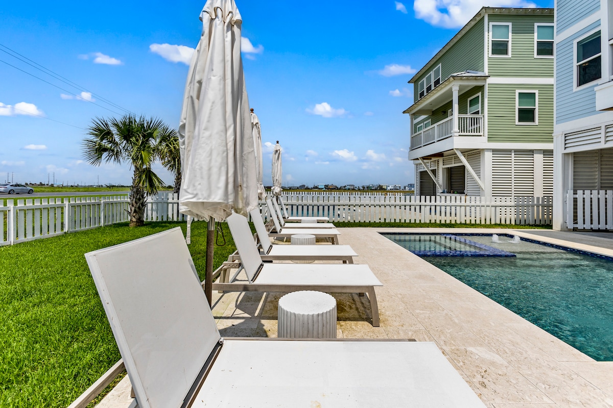 El lujo se encuentra con el encanto costero en el Beachside Village de Galveston. A pocos pasos de la playa privada, esta inmaculada casa cuenta con mejoras de alta gama: una cocina gourmet con una isla de 15 pies, granito exótico y cocina de gas. Relájate con estilo con ascensor de 3 pisos, mesa de billar, sala de juegos NBA Jam y vistas panorámicas. Capacidad para 12 personas con 2 suites King, 2 Queens y 4 camas individuales. Perfecto para reuniones refinadas, escapadas familiares o entretenimiento junto a la playa en uno de los vecindarios más exclusivos de Galveston. Permiso n.º GVR15367