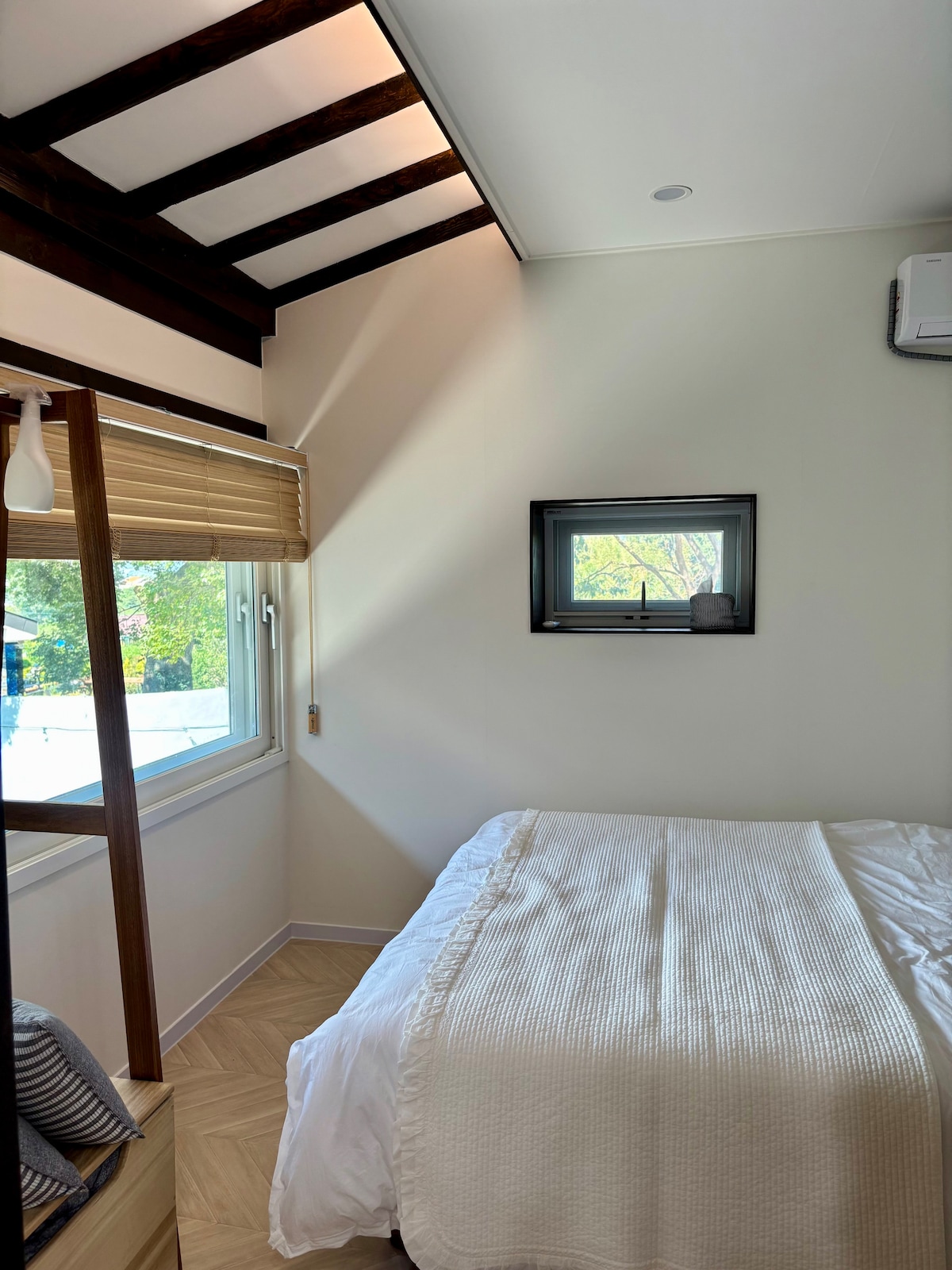 Es un hanok espacioso y tranquilo adecuado para toda la familia. Hay 3 habitaciones, 2 baños, una cocina, una sala de estar y un amplio patio. 8 personas pueden alojarse cómodamente, pero 10 personas pueden sentirse incómodas porque hay 2 baños. El estacionamiento es posible para 2 autos en el lado derecho del patio, y también hay un estacionamiento público (gratis para 10 autos). La distancia al teleférico marino de Mokpo y a la plaza de la Paz de Mokpo es de 20 minutos. Cerca de Flora 53 Cafe, Taesan Bakery, Iljjangterulbo y otros restaurantes también están cerca.