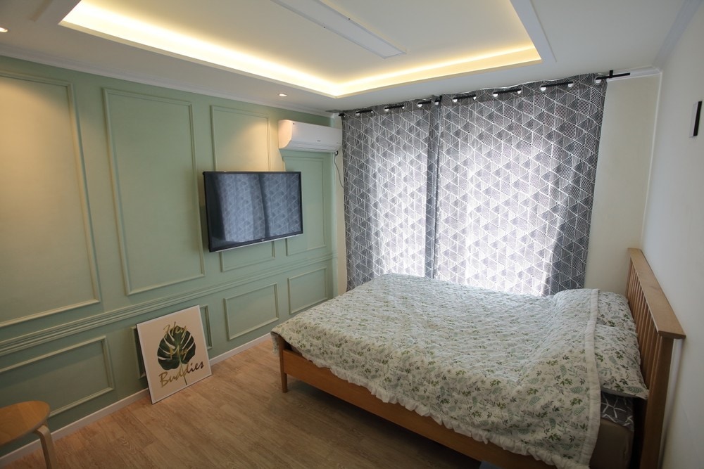 Es un alojamiento privado no presencial para un solo equipo, cómodo 25 pyeong en un gran terreno de 200 pyeong en auto desde el alojamiento. Es una entrada del pueblo junto a una carretera ancha, pero está a unos 50 metros de la casa privada, por lo que es un alojamiento privado no presencial que no perturba en absoluto la mirada y el ruido circundantes. Los dos dormitorios son una cama tamaño queen y dos tamaños súper individuales, por lo que tenemos un espacio donde 4 personas pueden descansar cómodamente. Si hay personas adicionales, prepararemos ropa de cama en la sala de estar. Puedes disfrutar de las películas de Netflix en un televisor grande de 8k 85 pulgadas. La distancia de la playa también está a 3 minutos en auto de Surf Beach. Después de estacionar, hay 20 escaleras bajas y bonitas en el jardín. Si no te sientes a gusto, ponte en contacto con él durante la reservación.