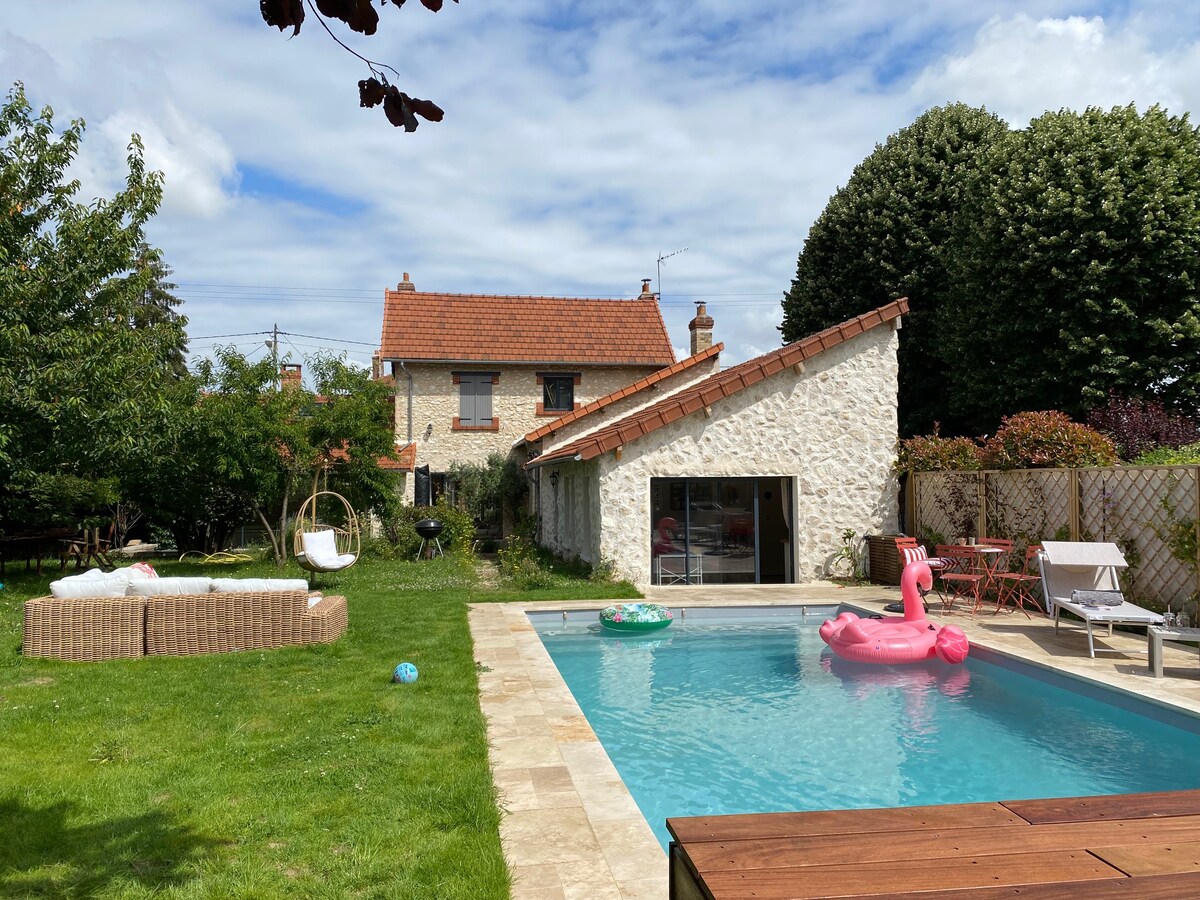 Bienvenido a la casa de la felicidad. ALOJAMIENTO AMUEBLADO CLASIFICADO ♡ En Campagne Cosy, usted es nuestro invitado de PRESTIGE ♡ Cerca de todo, lejos del ruido: ✅Zoológico de Thoiry: 10 min ✅Palacio de Versalles: 28 min ✅París: 45 min Sistema de✅ climatización Tanto si busca romanticismo, aventuras en familia o tranquilidad para el trabajo, ¡le prometemos una estancia inolvidable con puestas de sol inolvidables en un jardín de 1500 m²!