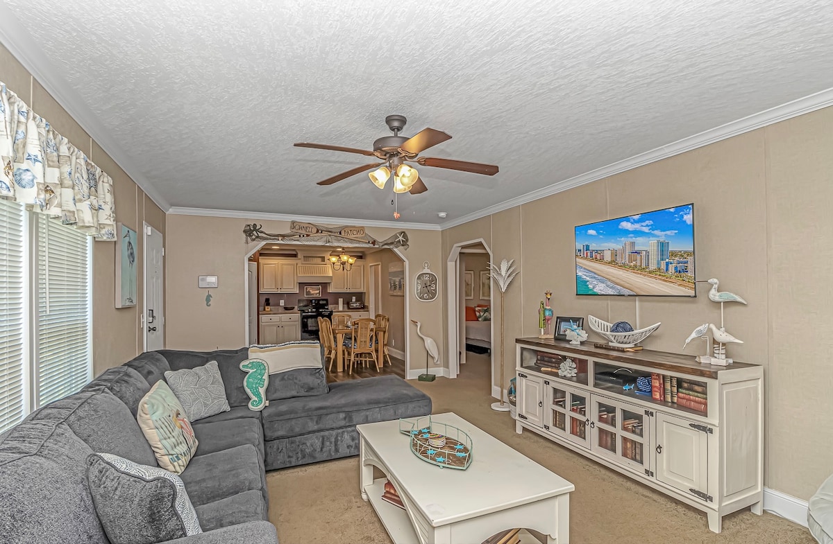 Un paraíso de playa ubicado en una comunidad cerrada de carritos de golf frente a la playa. Despiértate con la brisa del mar, el aire salado y el cálido sol. Situado a pocos minutos del mar. Moderno y bellamente amueblado con todas las comodidades del hogar. 2 camas, 2 baños y cocina totalmente equipada. Vallado en el patio trasero. Oceanside Village cuenta con un nuevo parque acuático para niños, piscinas cubiertas y al aire libre, canchas de tenis, gimnasio, parque para perros, lagos para pescar, parque infantil, campo de softbol, cancha de baloncesto y mucho más.