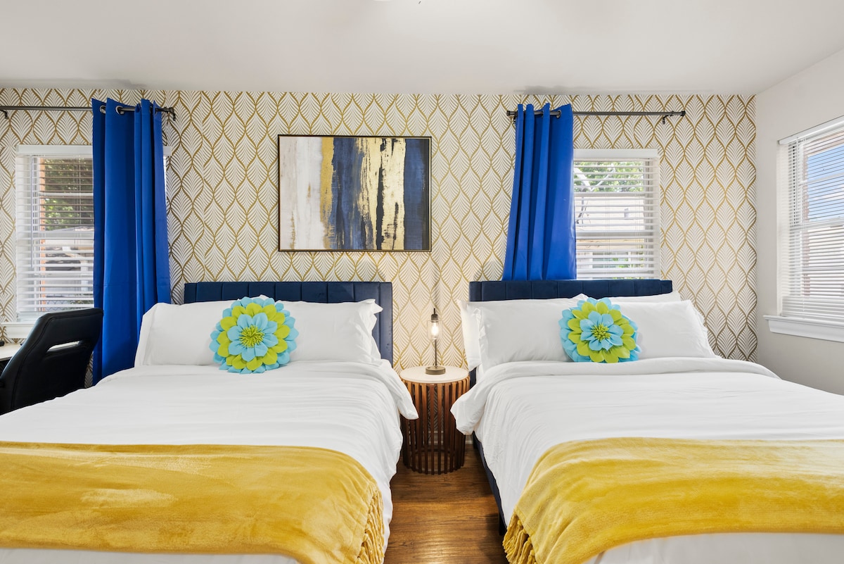 Limpieza profesional con altos estándares, incluidos los pomos de las puertas, los interruptores, etc. ¡Alójate en tu propia «galería» a poca distancia a pie de 2 restaurantes y tiendas en Bishop Arts! Recientemente actualizado con todos los extras: lujosas camas, cocina con cocina de gas y granito, sala de estar completa con TV inteligente de 55 pulgadas, baños modernos con ducha a ras de suelo y una gran cantidad de comodidades. Todo el arte en tu morada es arte original de artistas locales y está disponible para la venta: llévate un pedazo de Dallas a casa. Disfruta de mucho espacio, lujo y bellas artes.