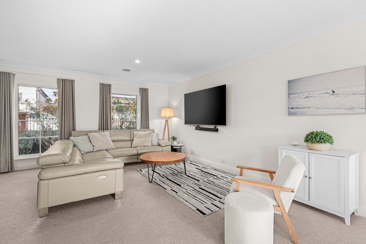 Bienvenido a esta casa adosada de nueva construcción que vive en el corazón de la ciudad de Geelong. Tanto si te hospedas por trabajo como por placer, todo está cerca de ti. Estás a solo: A 1 minuto del estadio de fútbol de Geelong. A 3 minutos de la estación de tren de Geelong. A 5 minutos del distrito financiero y del paseo marítimo de Geelong. A 30 minutos de Torquay, capital del surf de Australia A 1 hora de Melbourne. Ten en cuenta que solo aceptamos reservas de personas que se alojen fuera de Geelong y de personas mayores de 25 años.