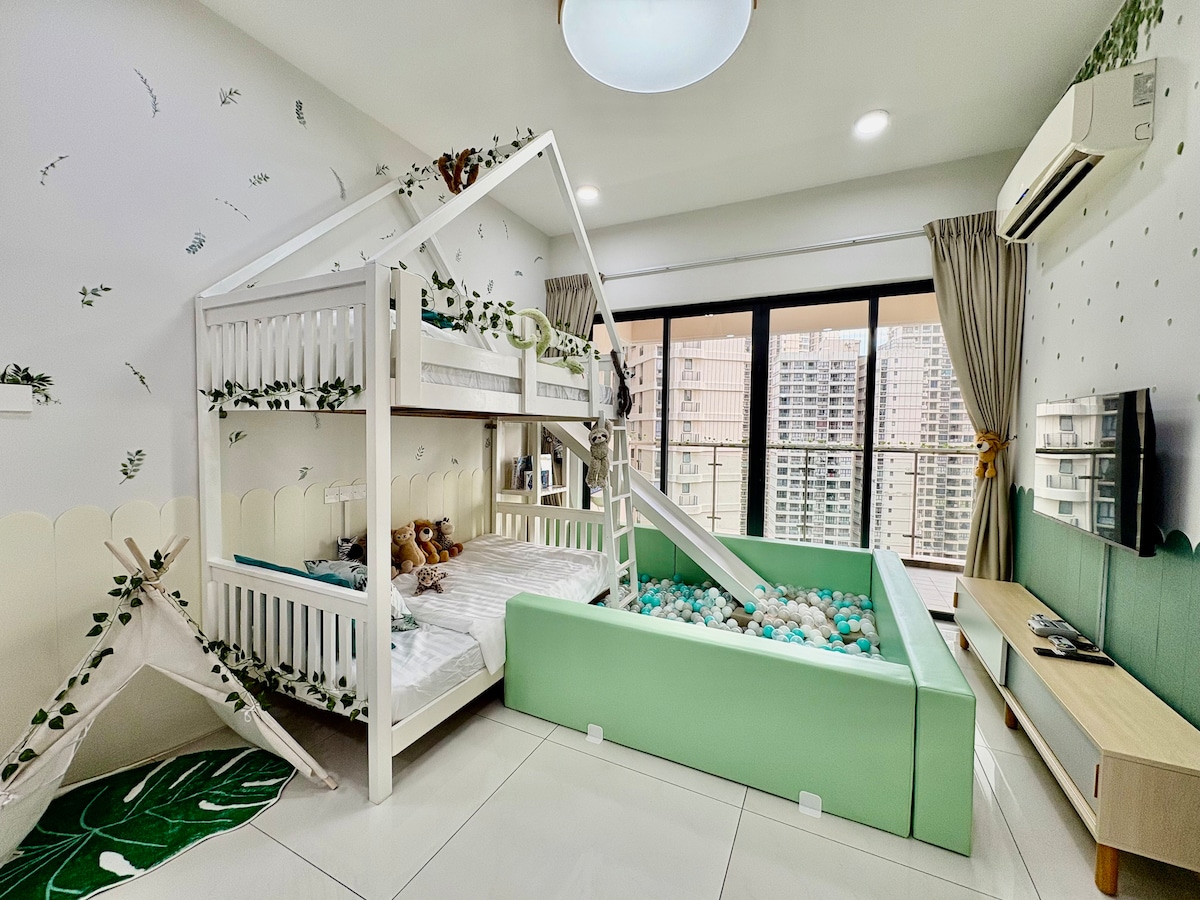 Ciudad ❤️forestal❤️ Forest City con vista al mar y a la montaña, disfrute de las vistas del amanecer y la puesta de sol. Camina hasta la playa y disfruta del aire fresco y agradable. La sala de estar y el dormitorio están cuidadosamente diseñados, y la cocina y el baño están completamente equipados, para que pueda disfrutar de la belleza del mar y al mismo tiempo sentir la calidez y la comodidad del hogar. Ya sea para pasar tiempo con la familia o para hacer una fiesta con amigos, puedes disfrutar de una vida de alta calidad. Además, también hay un parque acuático, una ciudad laberíntica, columpios en la playa, un gimnasio, una piscina, una sala de yoga, una sala de lectura, una cancha de baloncesto y otras instalaciones de ocio. Puedes relajarte y disfrutar de una experiencia de vacaciones única en estas instalaciones.