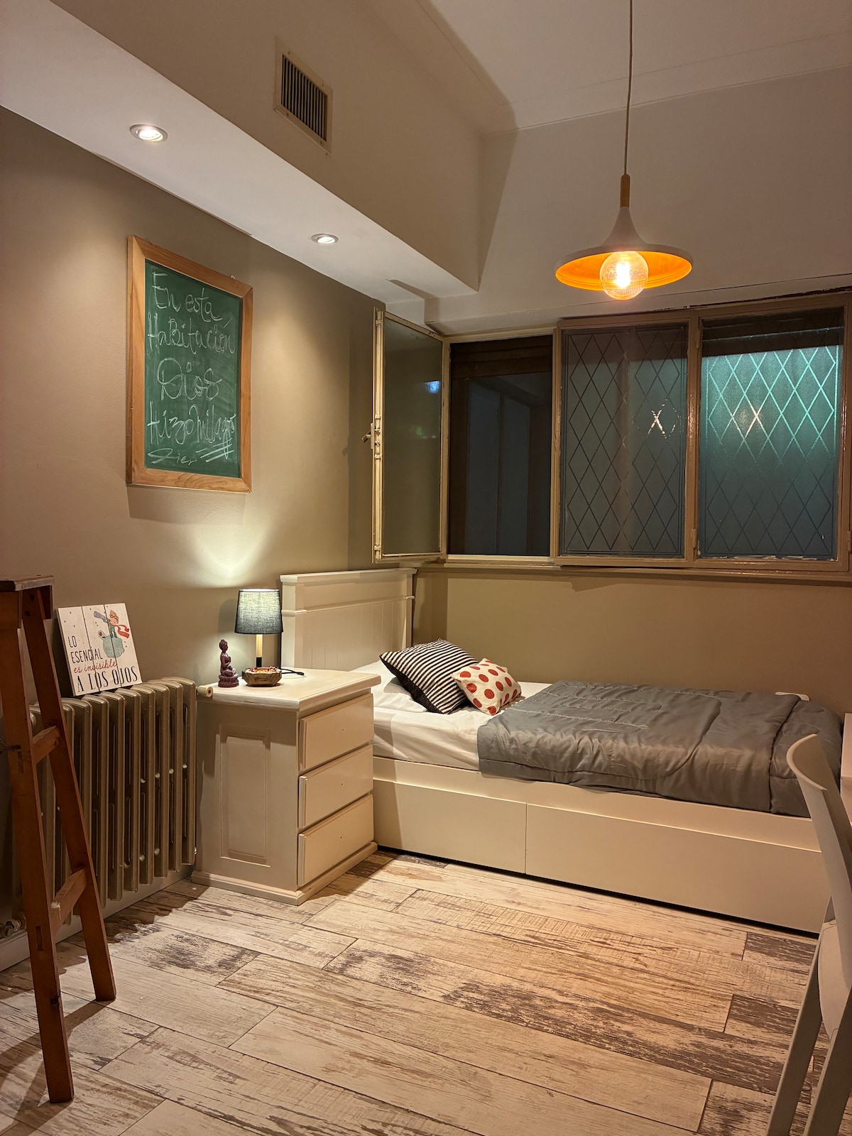 Uno de nuestro apartamentos recuperados, botánica, ofrece una estadía de calidez entre la flora y madera reutilizada para hacer de este un espacio especial; Ambientes cómodos, tenue iluminación nocturna y rincones particulares...