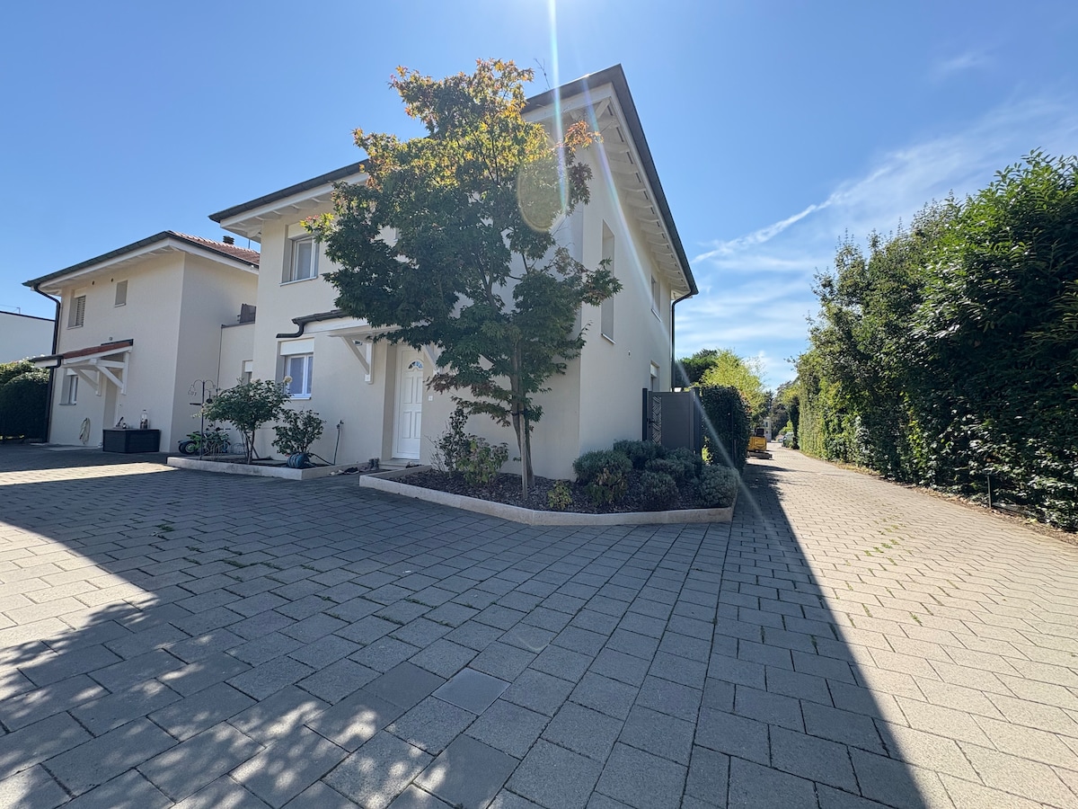 Casa única por su proximidad al lago, acogedora y bien equipada, 3 dormitorios, 2 baños, jardín, con acceso privado y directo al lago en una propiedad muy encantadora. Ideal para 2 parejas. 40 minutos a la estación en autobús, agrega 7 minutos para llegar en tren a la estación desde el aeropuerto. WIFI, productos básicos, sábanas y toallas, secador de pelo, plancha y tabla de planchar amueblada.