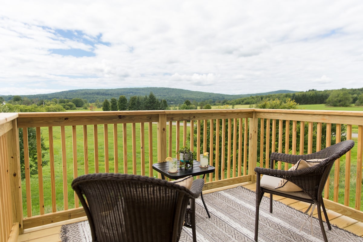 Enjoy all Vermont has to offer in this bright, airy space minutes away from Burlington and the mountains. On 14 acres with a brook, it’s a short walk down a dirt road to a historic covered bridge and town common. Fall colors are breathtaking when taken in from the barn deck, while Spring and Summer visitors enjoy free concerts on the town green on Sundays. Spectacular sunsets and hot air balloons are familiar sights. It doesn’t get much more Vermonty. *Note: No Cleaning Fee!