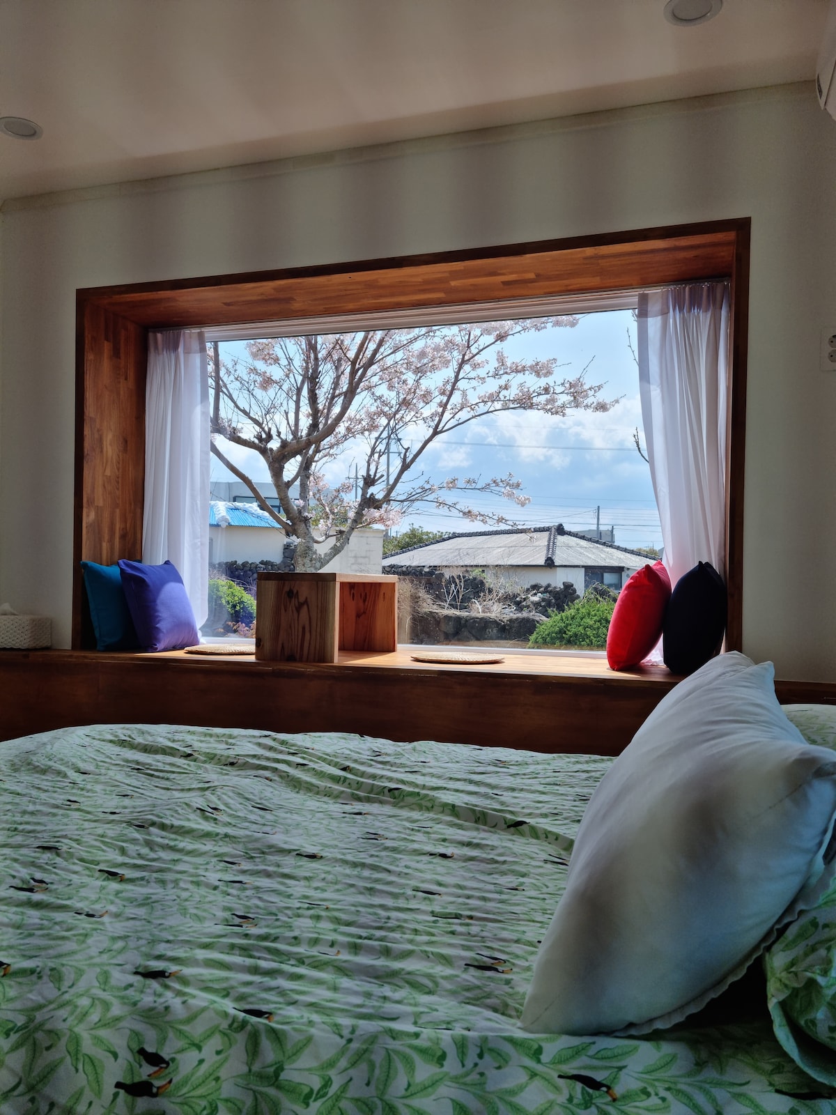🏡 Casa privada para un máximo de 4 personas – Básico 2 personas (persona adicional 10.000 KRW) – Jacuzzi al aire libre frente al cielo – 2 baños · 2 camas tamaño queen – Horizonte más allá de la terraza y vista occidental de Jeju “Pongnang” significa Pangnam en el dialecto de Jeju. Delante del arce, puedes disfrutar de un momento relajante en el atardecer y el paisaje de campo verde en el oeste de Jeju. La parte delantera del alojamiento está abierta a los campos de Jeju, por lo que puedes ver el paisaje de Jeju, donde se combinan aerogeneradores y horizontes cuando subes a la terraza al atardecer. Disfruta del cielo y las estrellas en el jacuzzi, y del mar y la puesta de sol en la terraza. La pequeña playa, que está a 10 minutos caminando, es perfecta para disfrutar de la naturaleza en un alojamiento tranquilo. Crea recuerdos especiales tanto para la familia como para las parejas en un espacio que contiene la naturaleza y la sensibilidad de Jeju.