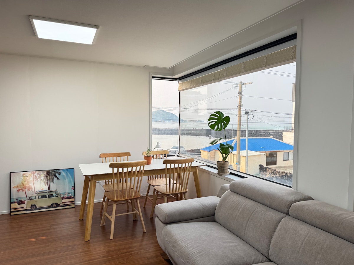 Vista panorámica del mar esmeralda de Hyeopjae / 4 personas estándar, máximo 6 personas, familia numerosa / alojamiento privado con la sensibilidad de Jeju Guok