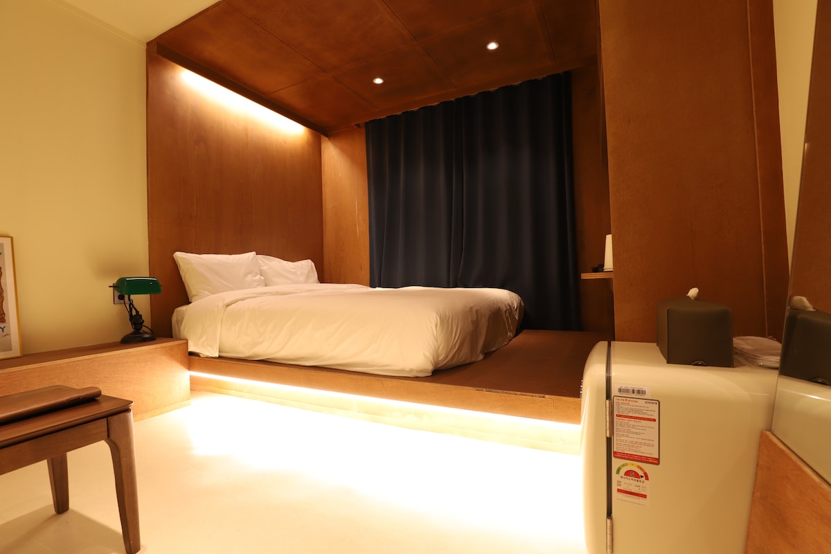 Colchón tamaño K de▶ 5 estrellas Sealy Excelente 2EA instalado Televisor ▶ Samsung UHD Smart de 75" aplicado ▶ 6 tipos de OTT (Netflix, Tving, Disney+, RafTel, Apple TV, YouTube) ▶ 15 purificadores de aire pyeongAire acondicionado y calefacción▶ individuales ▶ Bidé integrado VOVO Hay wifi individual disponible en la ▶ habitación Cargador inalámbrico instalado▶ en la habitación ▶ Lino funcional 100% algodón puro (máxima absorción del sudor)▶ Se proporciona un edredón de plumón de pato de primera calidad con certificación KC