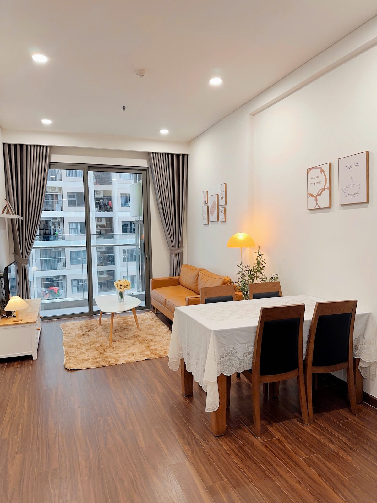 This stylish place to stay is perfect for group trip, family vacation. We have great sunset view, spacious open-concept kitchen/livingroom and dining room. You'll have access to many free and paid amenities in Vinhomes Ocean Park such as artificial beach with real sand and sea water, kayak, BBQ grill, tennis, basketball court, and more. Check-in and check-out are remote. We speak Vietnamese and English fluently and love to help with any questions.