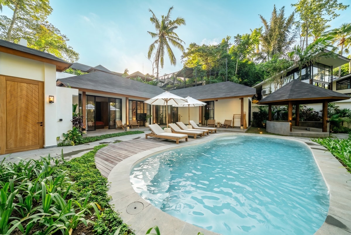 Villa Serene 3BR con piscina enorme + jardín • Ubud central