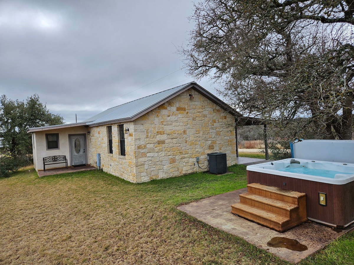 ¡JACUZZI DE MARCA PARA 4 PERSONAS! ¡sin TARIFA DE LIMPIEZA! ¡LLEGADA ANTICIPADA GRATUITA/SALIDA DESPUÉS de la HORA ESTABLECIDA(cuando esté disponible)! ¡TONELADAS DE SERVICIOS GRATUITOS! Salchichas, huevos, galletas de queso y paletas heladas gratis. ¡Creemos que deberías obtener más por los precios de Fredericksburg! Somos propietarios privados y operamos nuestra CASA DE HUÉSPEDES. Consta de una gran suite principal, TV Roku de 65"con sonido envolvente, cocina completa, baño completo con ducha a ras de suelo enorme, lavadora/secadora de tamaño completo y uso GRATUITO del cargador EV de 40 amp. Máximo 3 personas por código de incendios