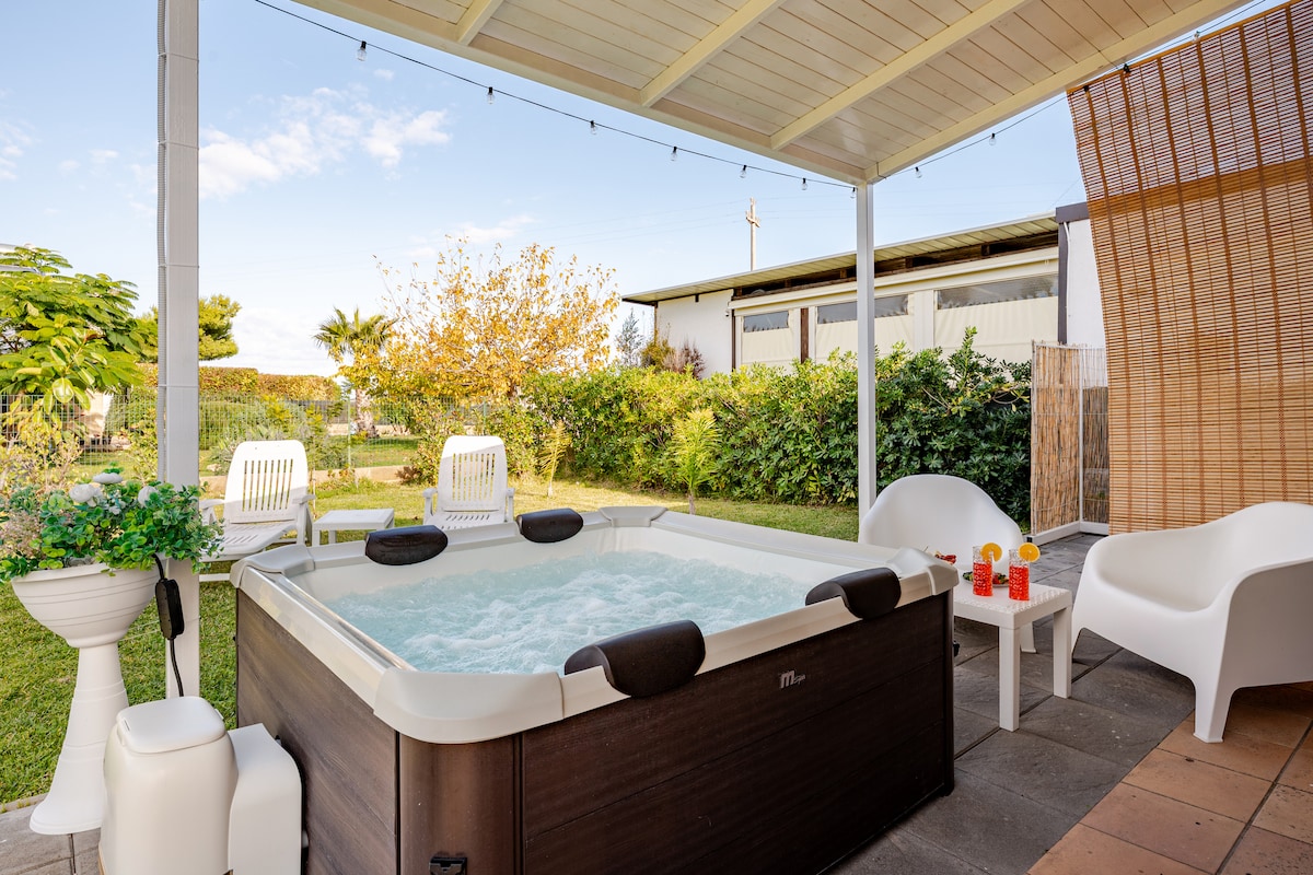 Nuestra propiedad, rodeada de vegetación, tiene vistas al mar y está llena de espacios para vivir. Aquí puedes pasar días relajantes en la piscina al aire libre en común con la bañera de hidromasaje, hacer una parada en el jardín o en la terraza donde puedes tomar una buena bebida y dejarte leer un poco, contemplar los colores de Sicilia mirando al mar. Recomendamos excursiones de un día a las ciudades cercanas de Siracusa y Catania para vivir experiencias culturales entre el arte, la historia, el volcán y la naturaleza.