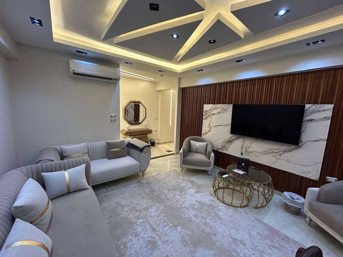 16 mnt Una opción económica pero acogedora, elegante e higiénica, con dos divisiones AC, apartamento bien amueblado en “ Dream land” 6 de octubre, wahat road, cerca del centro comercial de Egipto, adecuado para una persona o pareja,sin compartir , el alquiler para el alojamiento entero, consta de: un dormitorio: tamaños de cama: ancho 160 cm - Profundidad 200 cm, conveniente para dos personas adecuada y cómoda para dormir , baño y cocina totalmente equipada. El apartamento está a 20 minutos de la pirámide y del “gran museo” con todas las instalaciones.