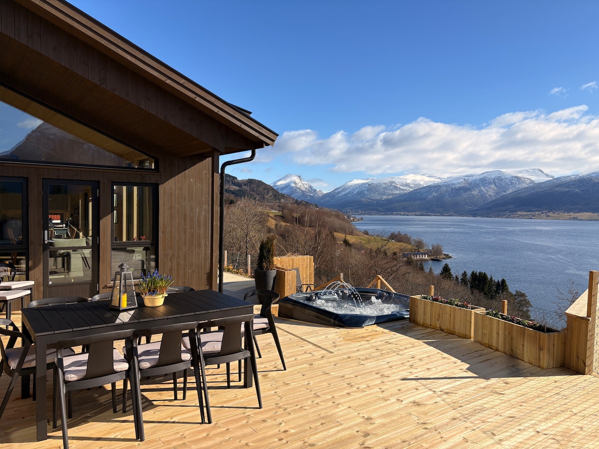 Impresionante cabaña con vista al fiordo con jacuzzi privado
