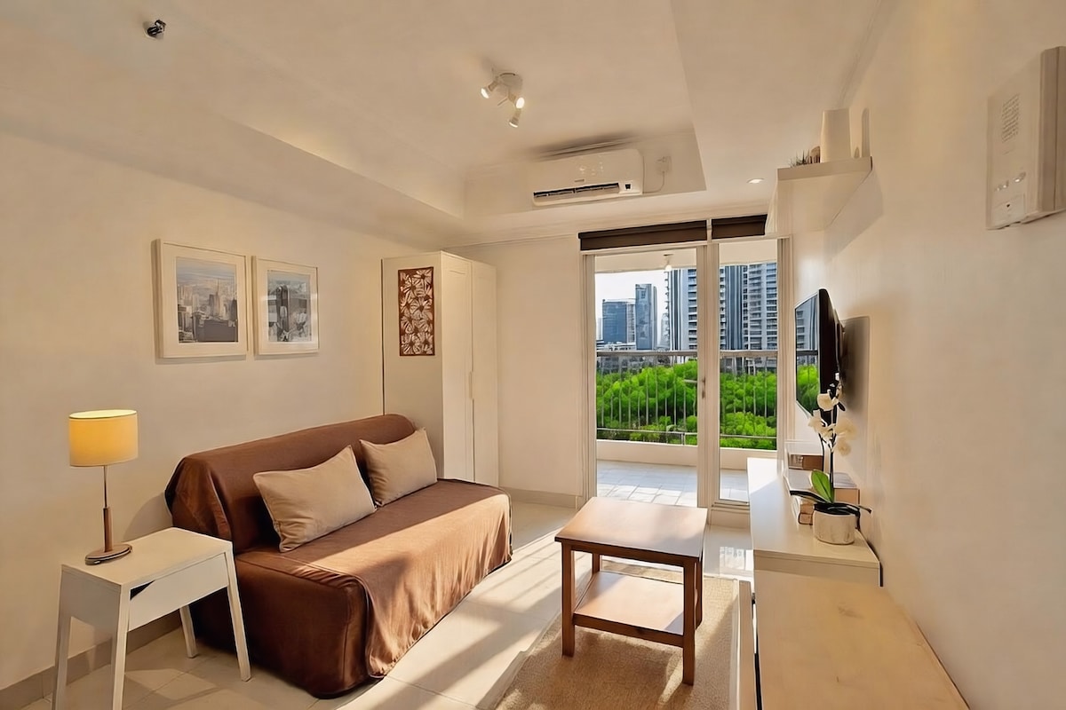 Disfruta de una experiencia elegante en este lugar céntrico. El departamento Green Sedayu está integrado con Green Sedayu Mall con muchas instalaciones en el interior. También está muy cerca del aeropuerto. Entra en tu acogedor refugio y ser recibido por un encantador balcón privado y una gran ventana que muestra impresionantes vistas de la ciudad. ¡Relájate y disfruta de la estadía! (La piscina y el gimnasio están disponibles para un alquiler mínimo de 6 meses🙏)
