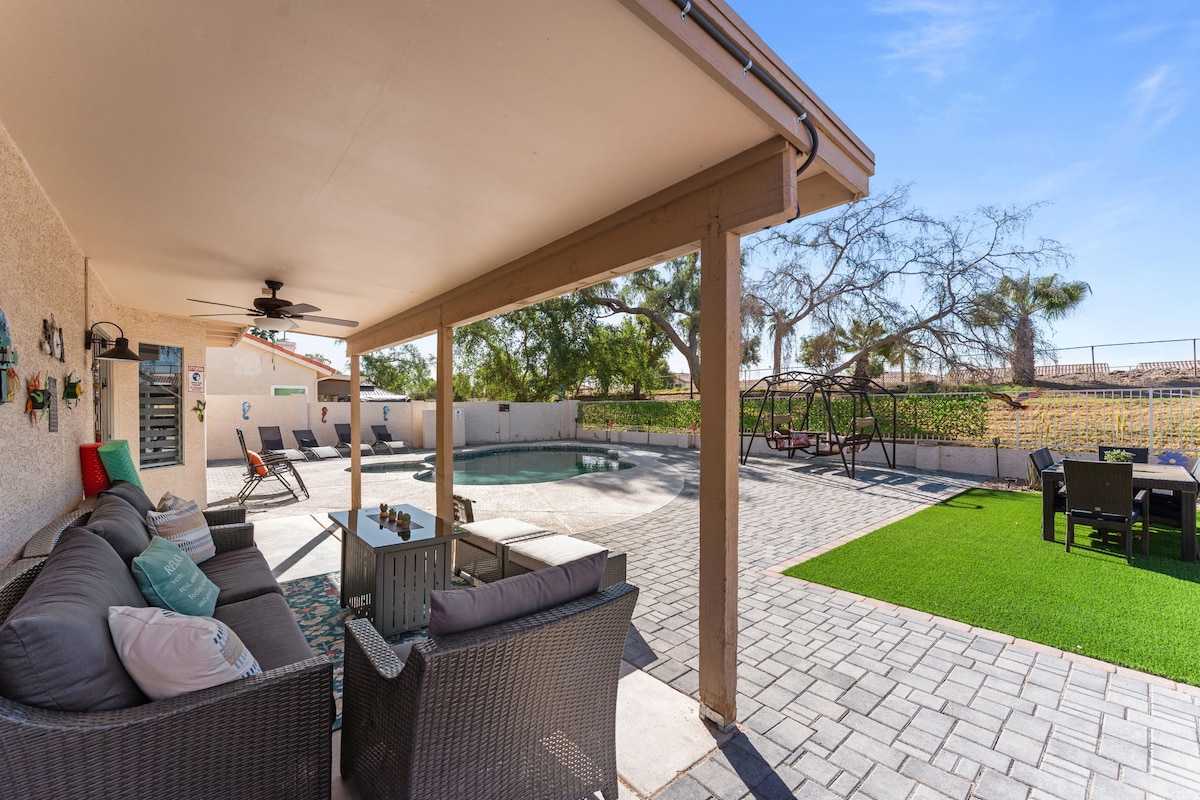 Disfruta de un acogedor patio privado con piscina y spa. Barbacoa, muebles de patio y tumbonas. Relájese en una casa con aire acondicionado en todas las habitaciones, disfrute de un televisor inteligente de 70 pulgadas, juegos y una cocina bien surtida. ¡Cerca del distrito de entretenimiento de Westgate, béisbol de entrenamiento de primavera, estadio State Farm, Top Golf, campo de golf Wigwam y pickleball! La calefacción de la piscina y el spa está disponible bajo pedido por $70 por noche. La calefacción del spa solo cuesta $ 35 por noche. Las tarifas se pagarán a través del centro de resoluciones antes de su uso. TPT #21458012 STR# STR0000032