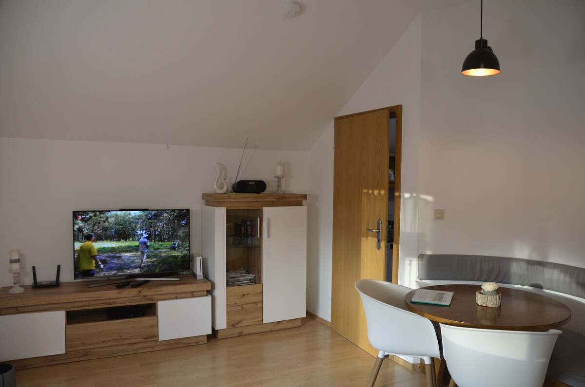 El pequeño apartamento tiene una acogedora sala de estar con un banco esquinero, una pequeña cocina y un sofá. En el dormitorio se duerme cómodamente en colchones nuevos. En otra habitación hay una litera con espacio para dos huéspedes pequeños. Y desde la gran terraza orientada al suroeste se puede contemplar el panorama de las montañas de Zellertal: ¡el largo sol de la tarde en verano es de ensueño!
