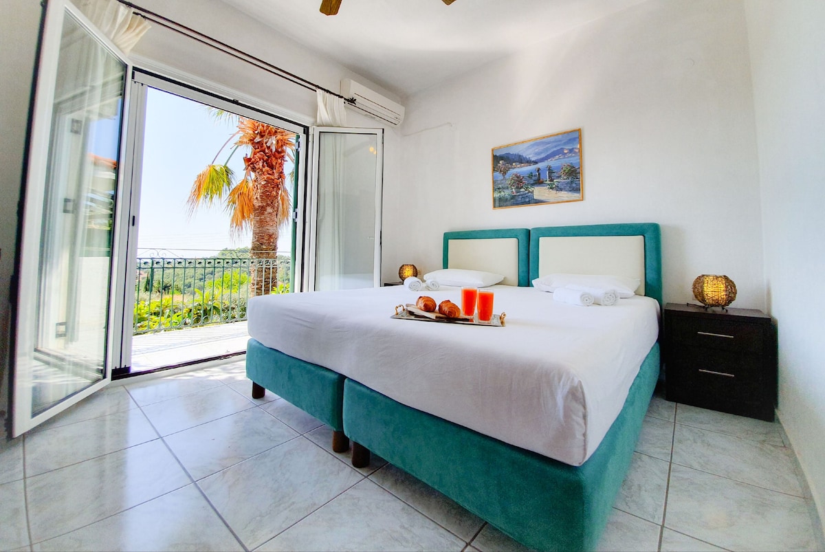 Fantastic and spacious apartment with wonderful sea view, located in a quite and picturesque area between Perdika/Arillas and Syvota, and within a 5 minute walk to the beach. The newly built and fully equipped apartment offers a large living room with kitchen, (sleeping) couch, LCD television, one bedroom and a bathroom with WC. From the spacious balcony/terrace you can enjoy a breath-taking view of Corfu and the smaller islands Paxos/Antipaxos.