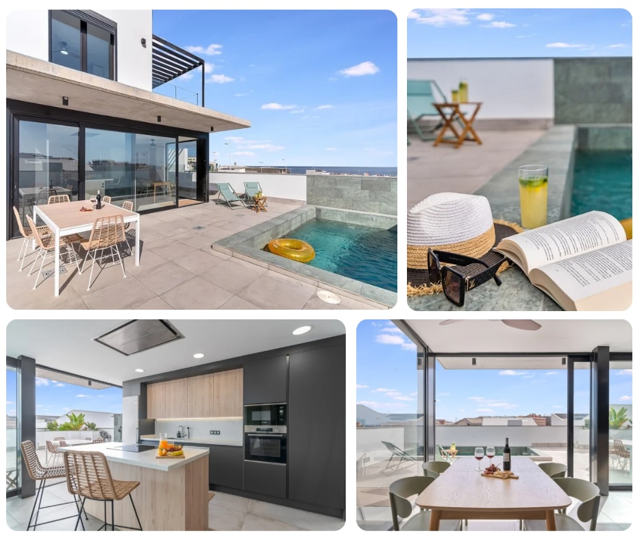 ¿Listo para vivir las vacaciones de sus sueños junto al mar? Con una decoración muy cuidada, nuestra lujosa vivienda ofrece amplitud y confort para disfrutar de unos días de descanso en familia en el ambiente único e idílico de la costa de Arguineguín. Cuenta con sala de estar con cocina, 3 dormitorios, 2 baños, azotea-solárium y una amplia terraza lujosamente equipada con mesas, sillas, tumbonas y una maravillosa piscina privada con vistas al mar y a los más bonitos atardeceres de Gran Canaria