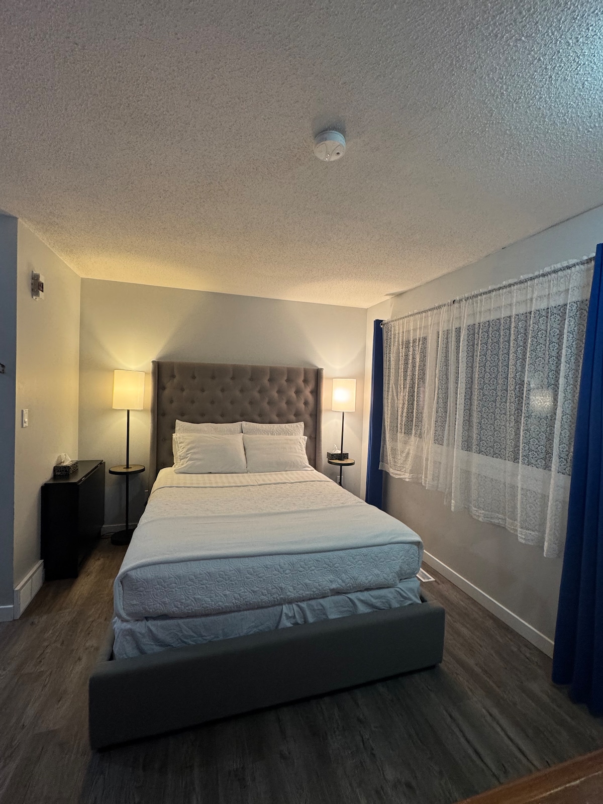 Suites modernas recientemente renovadas convenientemente ubicadas en Clairmont, a pocos minutos de la Grande Prairie. Nuestro edificio y SUITES son seguros y protegidos y el edificio se limpia diariamente en todas partes. Todas las suites vienen completamente amuebladas con Wifi y TV inteligente. Cada suite cuenta con cocina pequeña con microondas , nevera y placa calefactora.