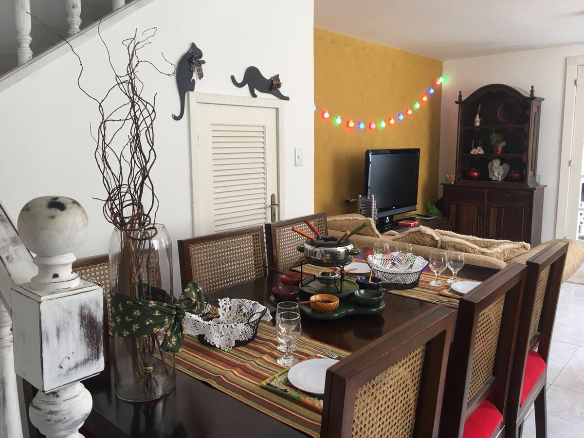 La propiedad es súper acogedora y bien ubicada. Nos quedamos cerca de Feirarte, CBF, el Comary Club. En nuestra calle todavía se puede encontrar panadería, mercado y snack bar. En los alrededores todavía se pueden encontrar restaurantes de renombre con fácil acceso, incluida la posibilidad de hacer todo a pie. Tenemos una zona de ocio con piscina y jardín. PAQUETE ESPECIAL PARA NAVIDAD, Nochevieja y CARNAVAL. PONTE en CONTACTO ANTES DE RESERVAR.