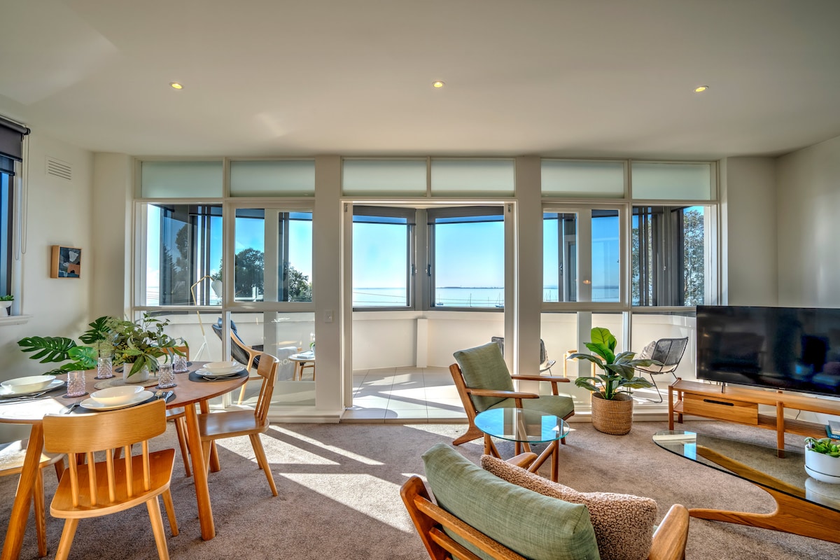 Moderno apartamento icónico de mediados de siglo frente al mar