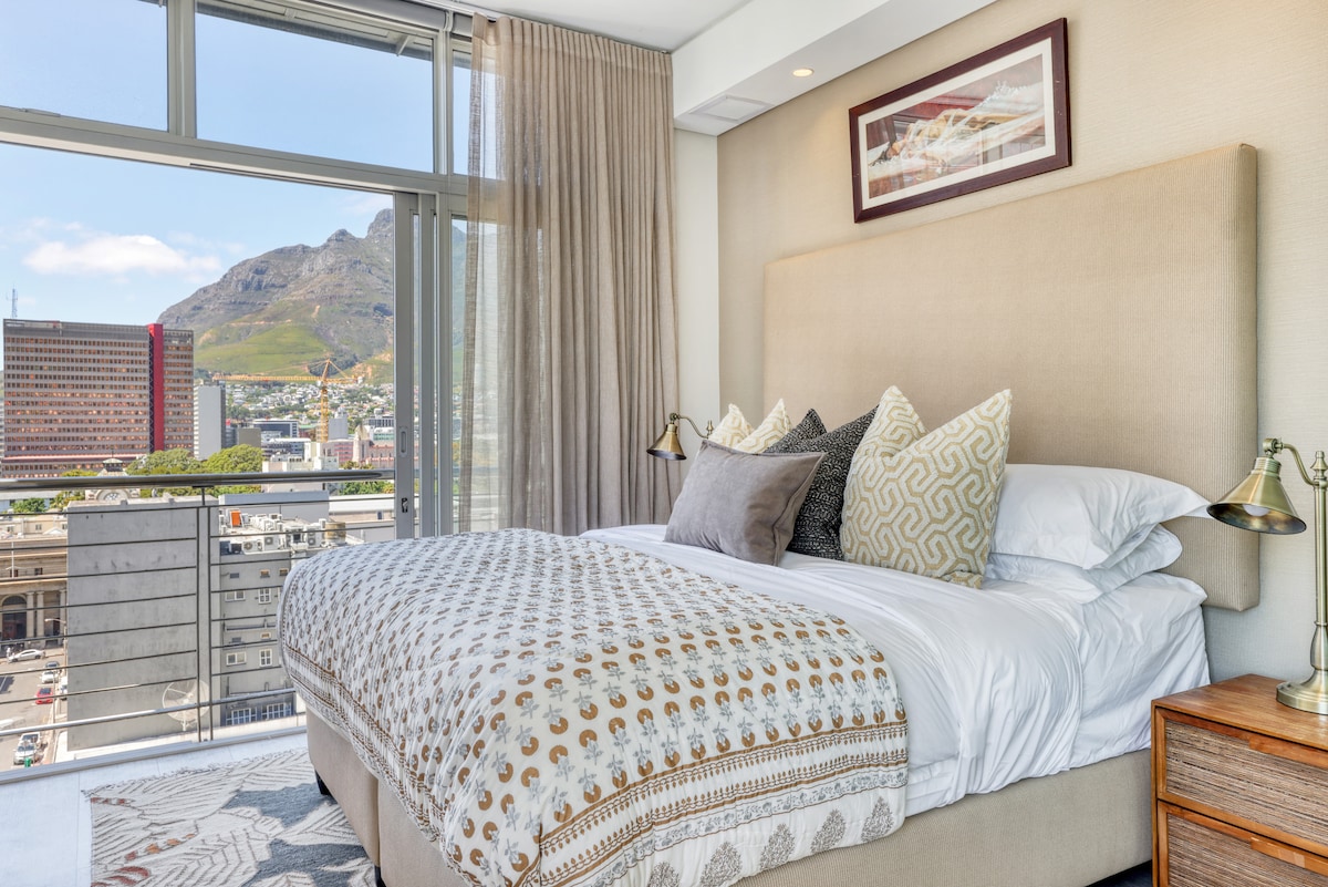 A chic, modern apartment with a big balcony, in the heart of trendy Bree Street, surrounded by top-notch restaurants and just a short walk to all city highlights. Stylishly decorated with all amenities for a super comfortable stay. Perched on the 21st floor, enjoy breathtaking views of the city, Stadium, Robben Island, Signal Hill, and the sparkling sea. Relax on the rooftop terrace with a refreshing drink from the bar. Just a stroll away from the CTICC and the V&A Waterfront. @CapeTown16onBree