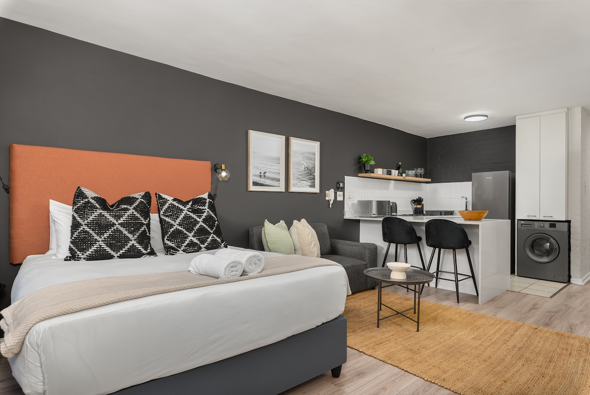 Amplio apartamento de 1 dormitorio en una villa victoriana de 112 años, perfectamente situado en el corazón de Green Point. A un corto paseo del popular V&A Waterfront y Sea Point Promenade, con fácil acceso al centro de la ciudad y a las impresionantes playas de Ciudad del Cabo. Relájate en el patio iluminado por el sol con una copa de vino, disfrutando de las largas noches de verano de Ciudad del Cabo. Disfruta de comodidades modernas como WiFi y Netflix. Ideal para parejas o viajeros solitarios, que buscan disfrutar de lo mejor que Ciudad del Cabo tiene para ofrecer.