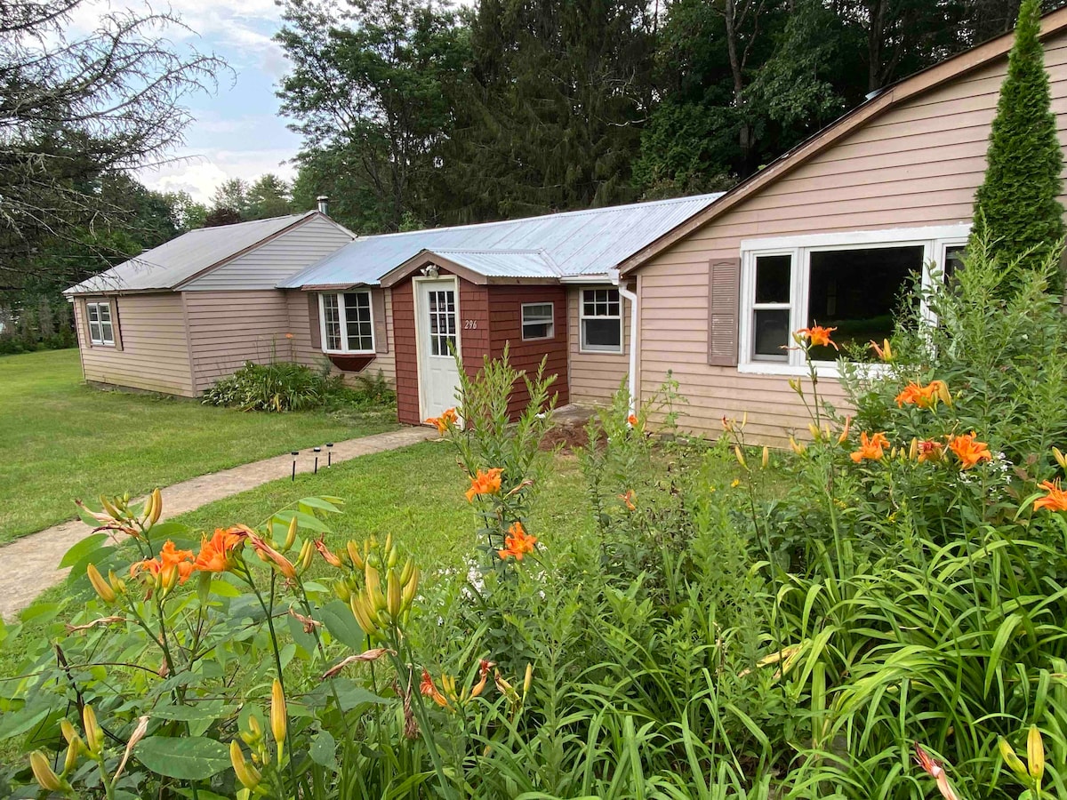 Pine Buck Meadows se encuentra en una propiedad de 6 acres ubicada a 15 minutos de Saratoga Springs y a 30 minutos del lago George. Muchas actividades a pocos minutos: pista de carreras, casino, golf, lagos, esquí, tubing, senderismo, senderos para motos de nieve, paseos a caballo, paseos en bote, pesca. Te encantará nuestro alojamiento por la luz, la comodidad, la cocina totalmente equipada y los techos altos. PBM es ideal para parejas y familias. La sala de estar está en el segundo piso y se accede a ella por un tramo de escaleras.