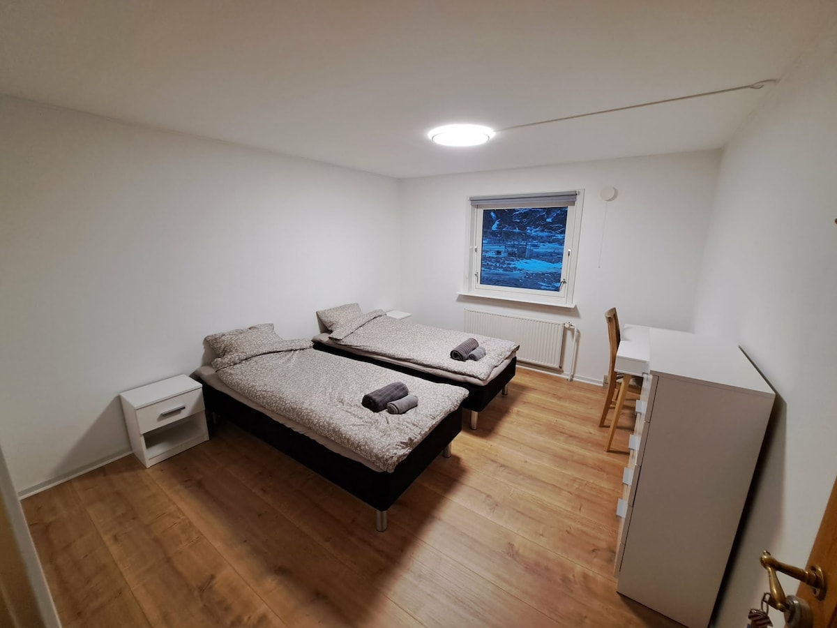Disfruta de nuestro increíble apartamento en el sótano de 2 dormitorios en una casa moderna con jacuzzi. Disfruta de la puesta de sol y observa las auroras boreales desde el interior del apartamento, se encuentra en una zona tranquila y acogedora. Cuando alquiles este apartamento en el sótano, lograrás la sensación de libertad, entorno tranquilo y lujo. Esta moderna casa tiene una acogedora cocina abierta, un dormitorio individual y un baño con un moderno jacuzzi. ¡El apartamento ofrece WIFI gratuito, lavadora, nevera con congelador, todo lo que tu corazón desea, está pensado!