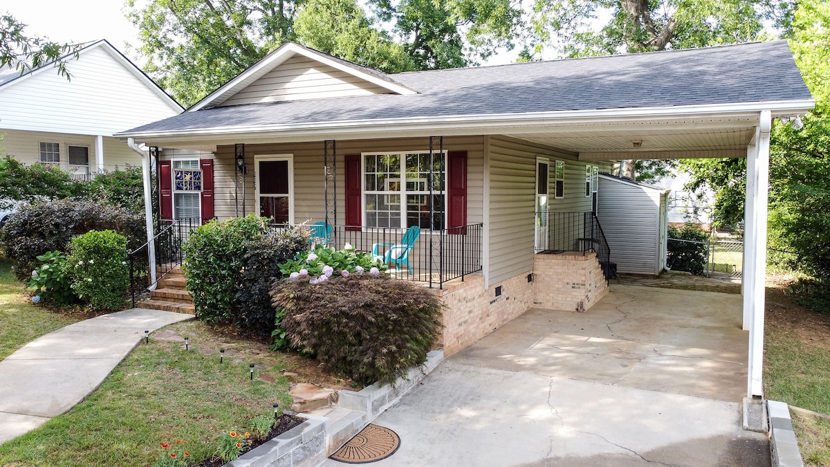 Located in the heart of the Village of West GVL Arts district, just 1 mile from Reedy Falls Park in DT Greenville! ✪ 1500 ft² - 2 bedroom/2 bath private ranch house (Child Friendly) ✱5 min Walk to Village of West GVL with Food, Coffee, & Art ✱Complementary Online & Onsite Guidebook ✱Artisan Table Swing in Backyard & Chairs on the Porch ✱Fully Stocked Kitchen with Premium Coffee, Olive Oil, & Spices ✱Work Space? Dining Room has plenty of usable space ✱Instant check-in w/ keypad access