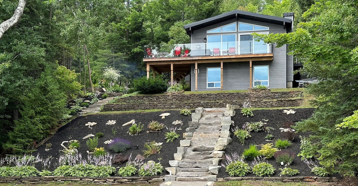 Architect-designed. Award-winning. Most unique property on The Bruce. Cozy, cool Lakeside Loft Guest House at Cameron Point. Open concept loft-style 2-storey Cabin and Bunky. Glass walls. Spectacular views of the water and bluffs! Summer: Loft + Bunky: 4 BR. Up to 8 guests from July 14. Extra fee for guests 5-8: $100/night pp Modern kitchen. 3-pce bath. Private entrance. Wifi. Winter: 2 BR. Base fee for up to 4 guests. Enjoy Bruce Trail hikes, swimming, kayaking. Chill by the fire!