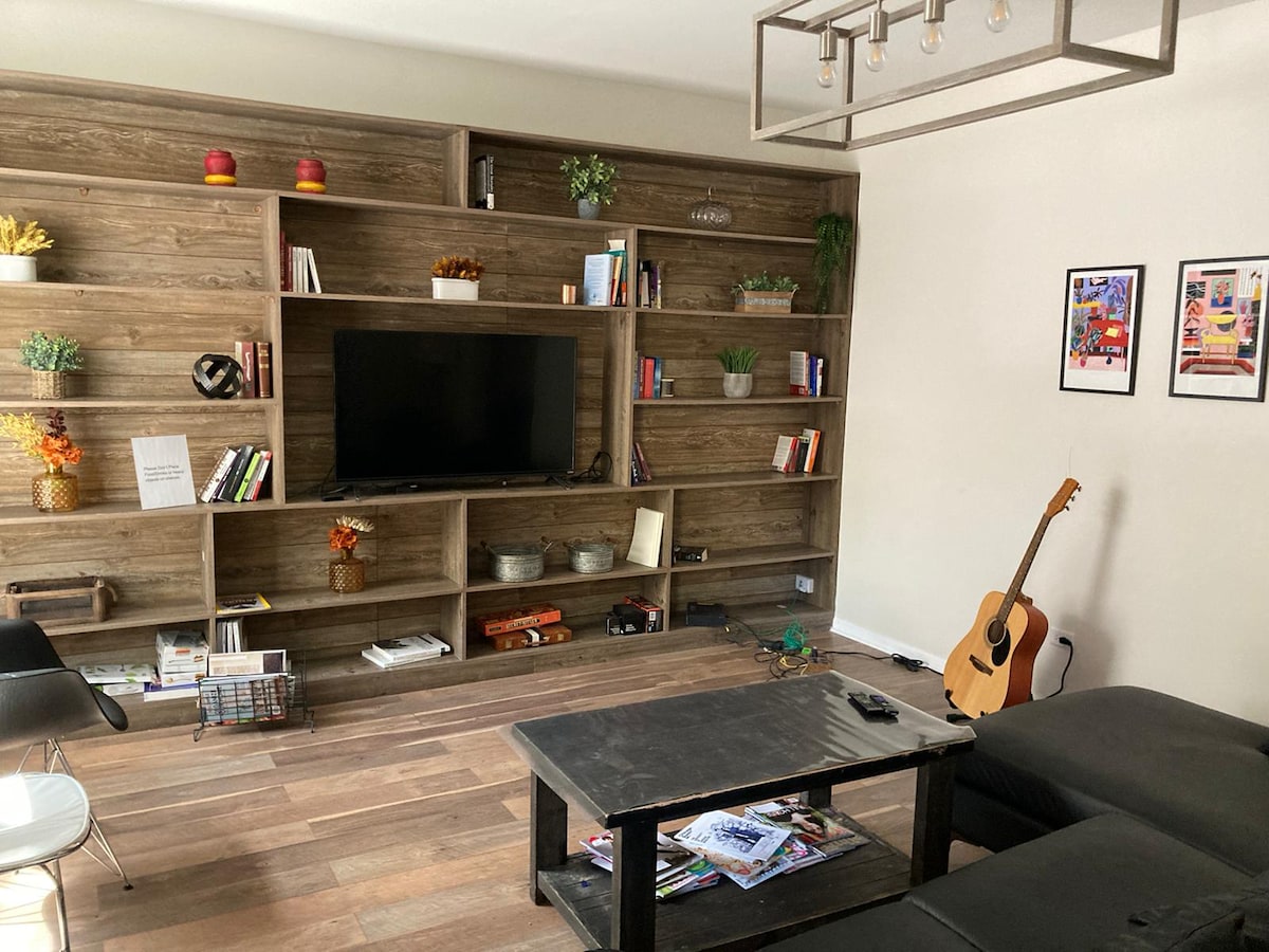 Disfruta de este divertido y único bar clandestino de 1 dormitorio y 1,5 baños en el corazón del distrito de Bronzeville de Chicago. Este ambiente artístico cuenta con una decoración ecléctica, murales pintados a mano, televisores inteligentes, bar, estudio de bienestar, espacio de trabajo remoto, aparcamiento gratuito en la calle y acceso sin escalones a nivel del suelo. Este acogedor espacio es perfecto para parejas divertidas, aventureros solitarios, viajeros de negocios y aficionados a las noches de juegos. Fácil acceso al centro de la ciudad (a 6 millas de Mag Mile, Navy Pier, Millennium Park), a la playa (a 1 milla), a museos y a estadios deportivos.