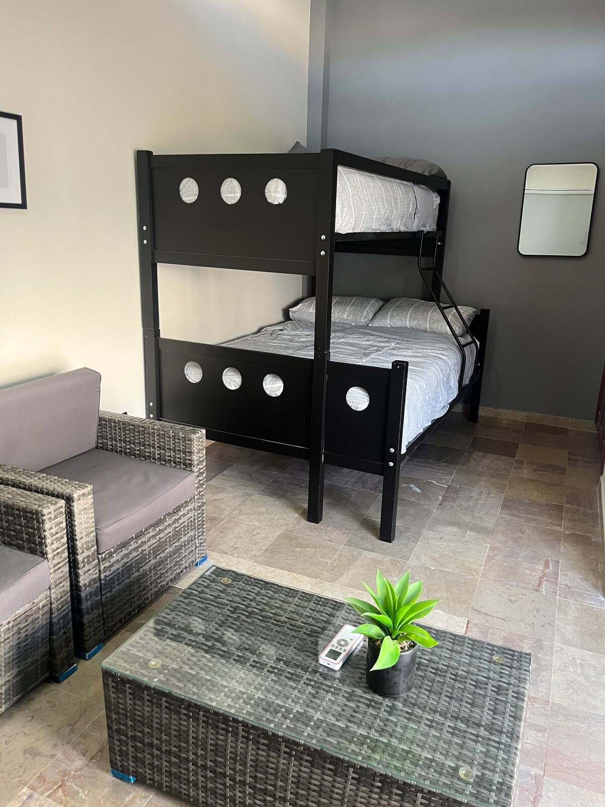 Disfruta de una experiencia con estilo en este Departamento, con una ubicación privilegiada en la zona centro de Guamúchil podrás llegar a lugares que se encuentran a menos de 200 metros de tu ubicación como (La Plazuela, Dairy queen, Oxxo, Coppel, Pastelería Diana, Mercado nuevo y Viejo).. Contamos con 2 Camas individuales, Sofa cama, Sillón forma de L, Aire Acondicionado, Agua caliente, Tv con Start+ y DisneyPlus, También contamos con cámaras de seguridad.