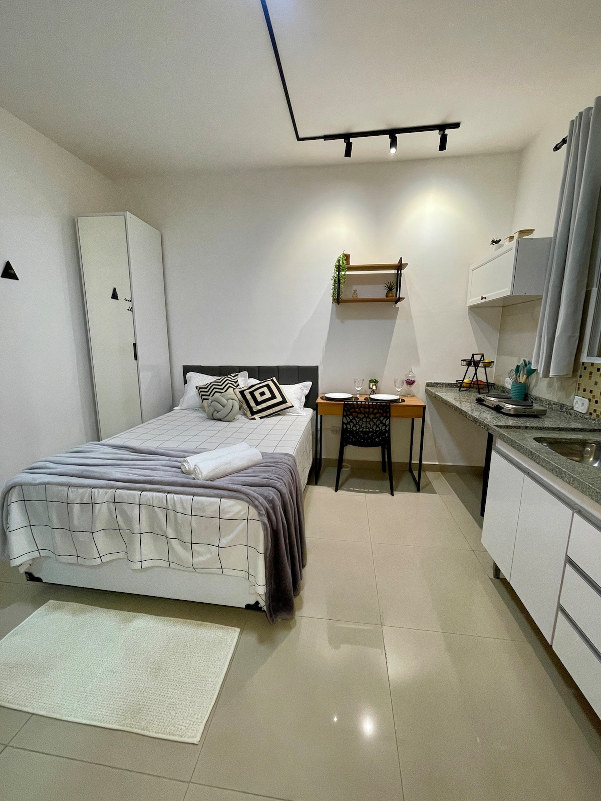 Nuestra mayor intención es que te sientas lo mejor posible en nuestros alojamientos, por eso tenemos nuestro tercer Estudio listo para que te sientas muy bien aquí en Guarulhos, en un barrio donde tienes de todo cerca. un lugar muy seguro y tranquilo, dentro del Estudio tendrás todo lo necesario para preparar un snack o una comida, ducharte, descansar, trabajar, estudiar o incluso disfrutar de una película y serie de Netflix u otra en nuestro televisor con Alexa.