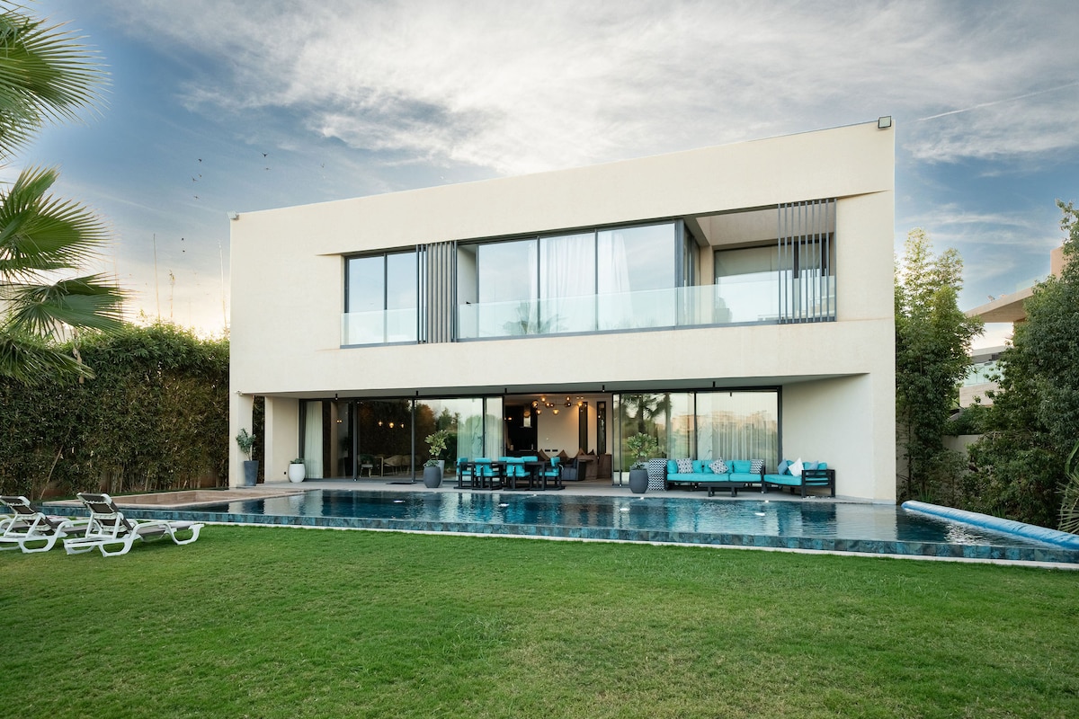 À seulement 10 minutes du centre-ville de Marrakech, la Villa Giulia est située dans la résidence golfique privée et sécurisée Argan Golf Resort, avec une magnifique vue sur l’Atlas. Cette propriété offre une vue sublime sur les montagnes, un hammam avec sauna, ainsi qu'une salle de cinéma ! Sa décoration soignée en fait un lieu idéal pour se retrouver en famille et profiter de vacances reposantes, dans un cadre élégant. Venez à la villa Giulia